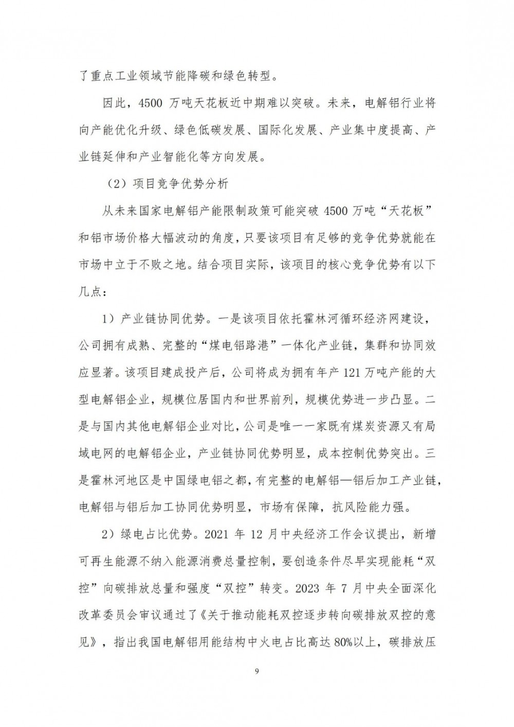 项目静态投资303294.32万元,吨铝静态投资8536元;动态总投资310107.6万元,吨铝动态投资8727元;流动资金30%为7801万元,总投资317908.5万元。按照电解铝项目投资最低资本金比例要求,本项目资本金为40%,其余为银行贷款。