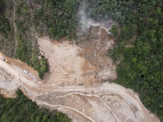 爆破当日,项目部按照爆破相关技术要求,对全体涉爆人员进行了详细的安全、技术交底,有序疏散现场作业人员,并在显眼位置设置警示标志,利用无人机对爆破警戒范围进行不间断巡查,严格确保各项安全防护工作到位有效。通过精准测算、周密部署、细致检查、严格遵章作业,首次爆破作业取得圆满成功,达到预期效果。