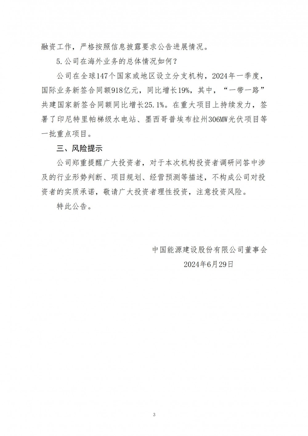 据电力家了解到,6月28日,中国能建发布关于接待机构投资者调研活动的公告。
