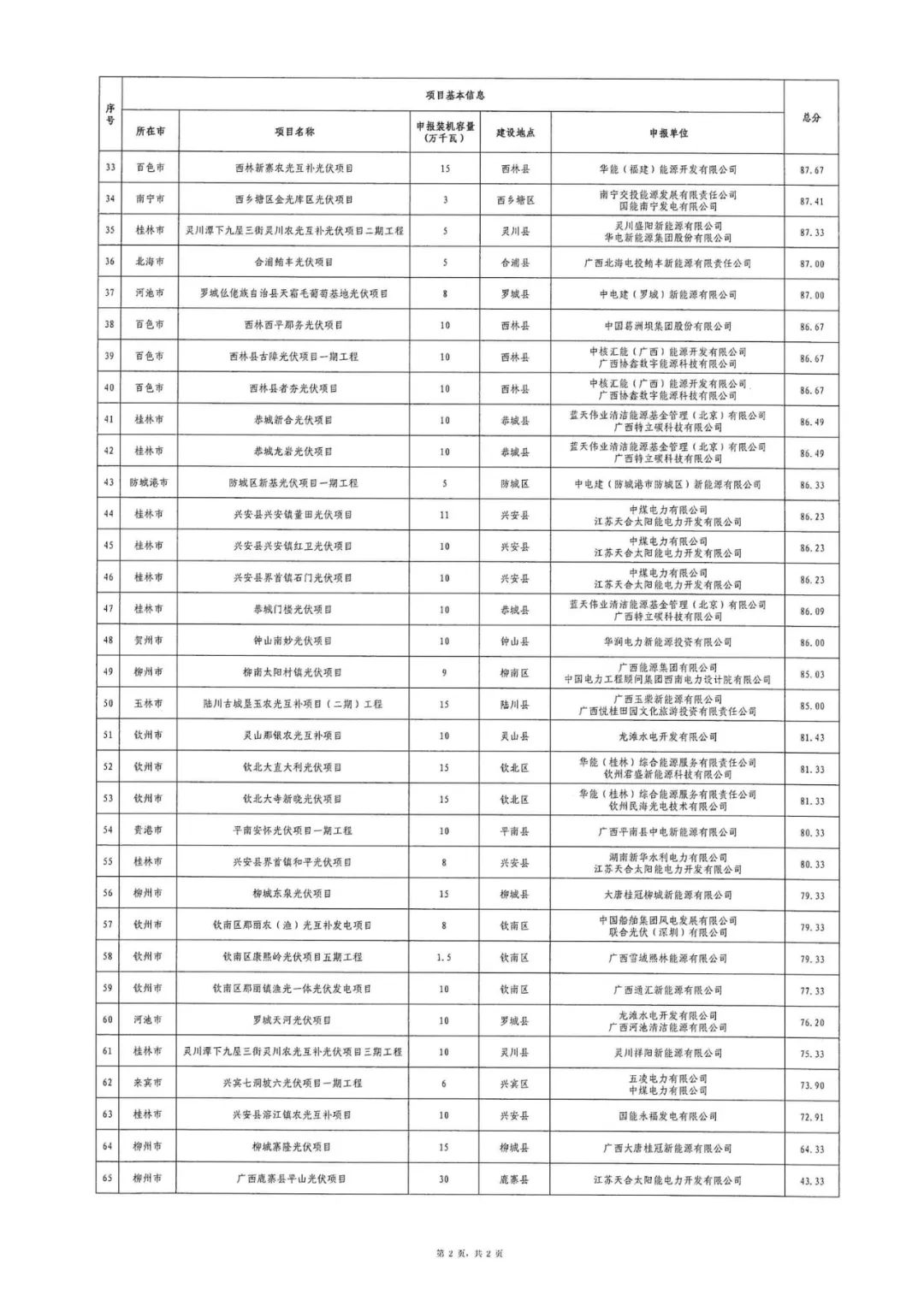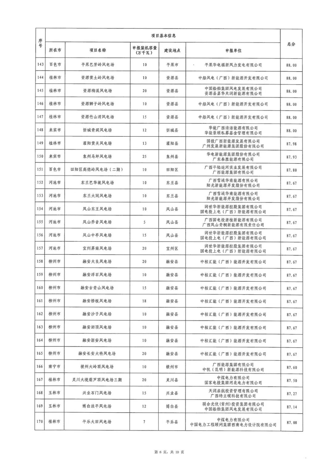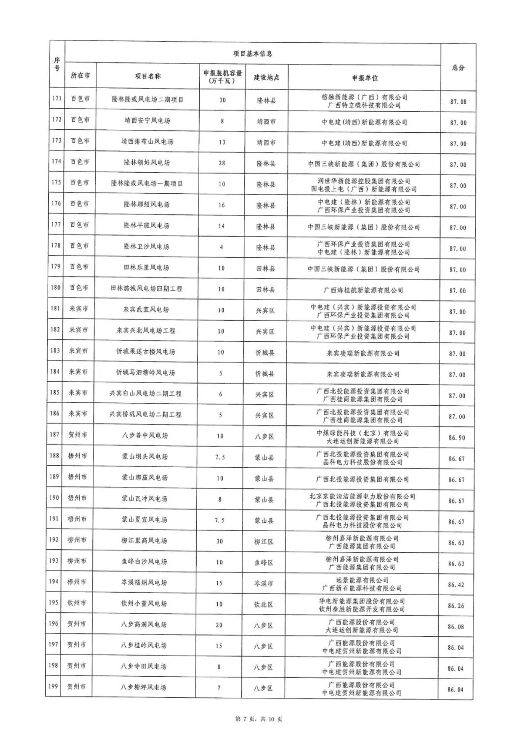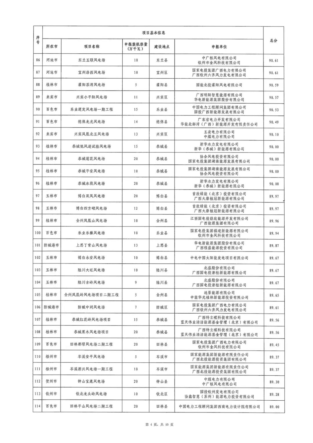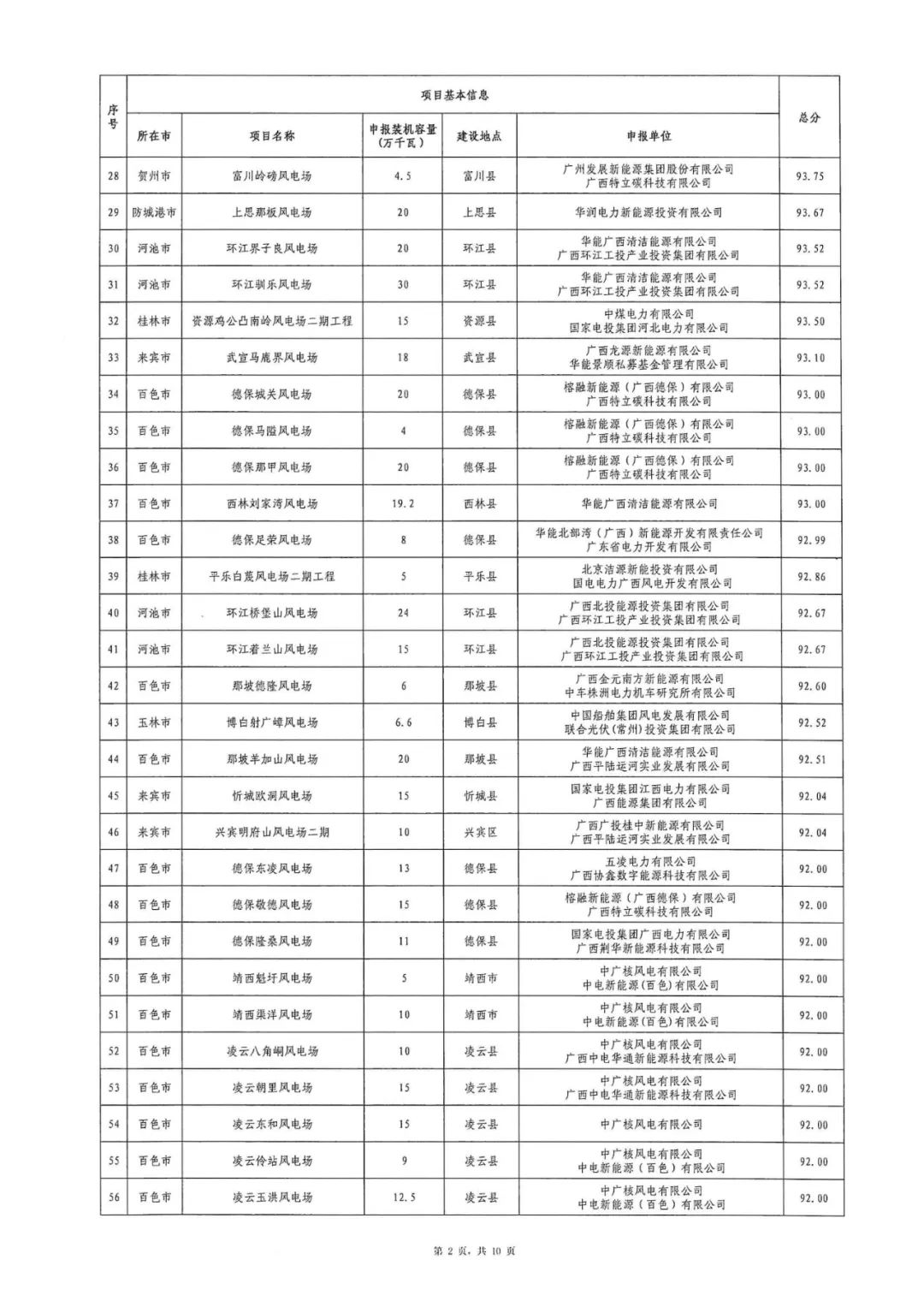 广西壮族自治区能源局关于2024年广西陆上风电、集中式光伏发电项目竞争性配置评分结果的公示