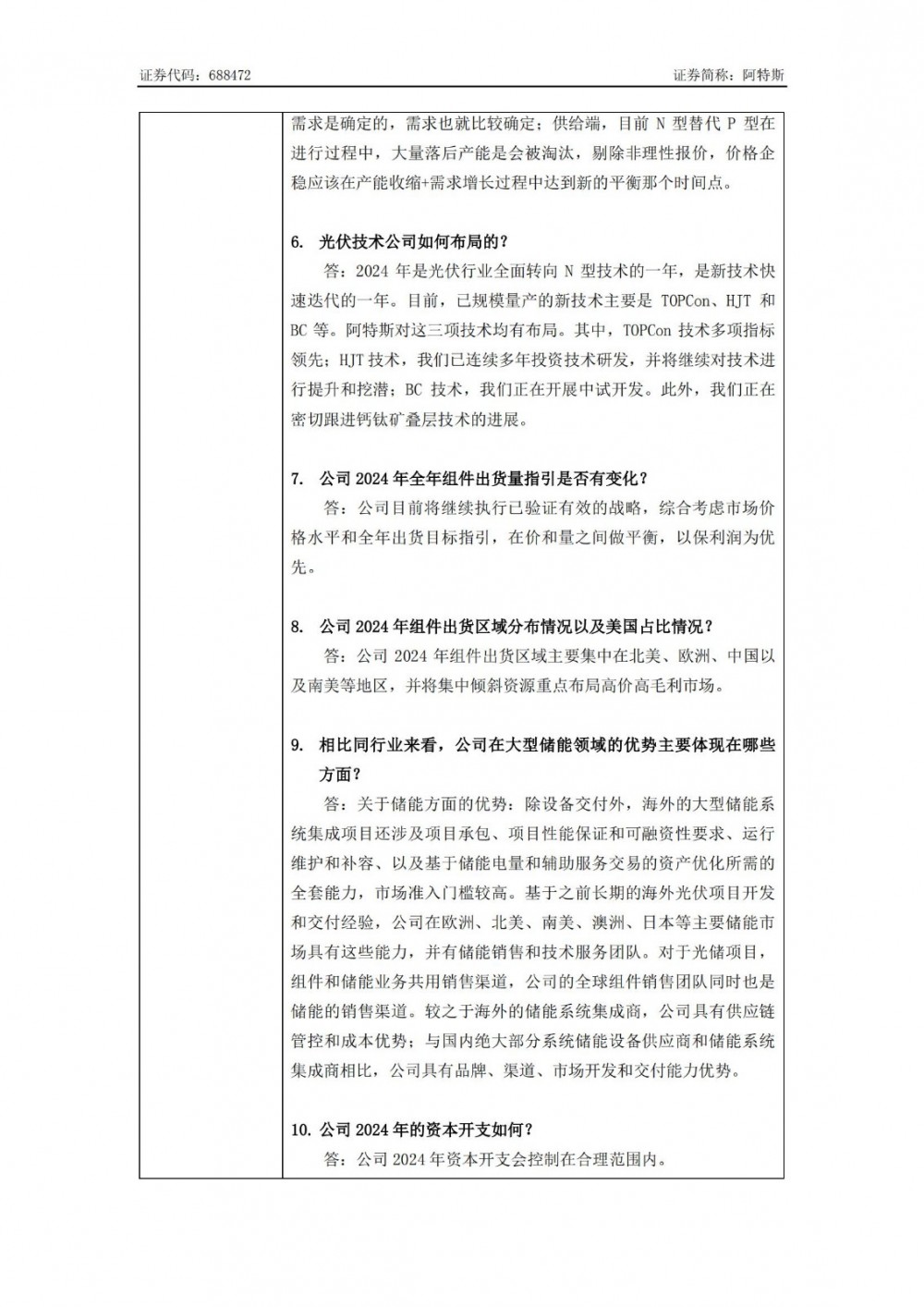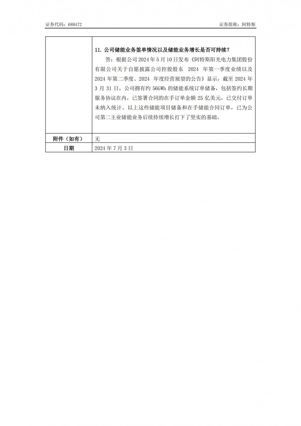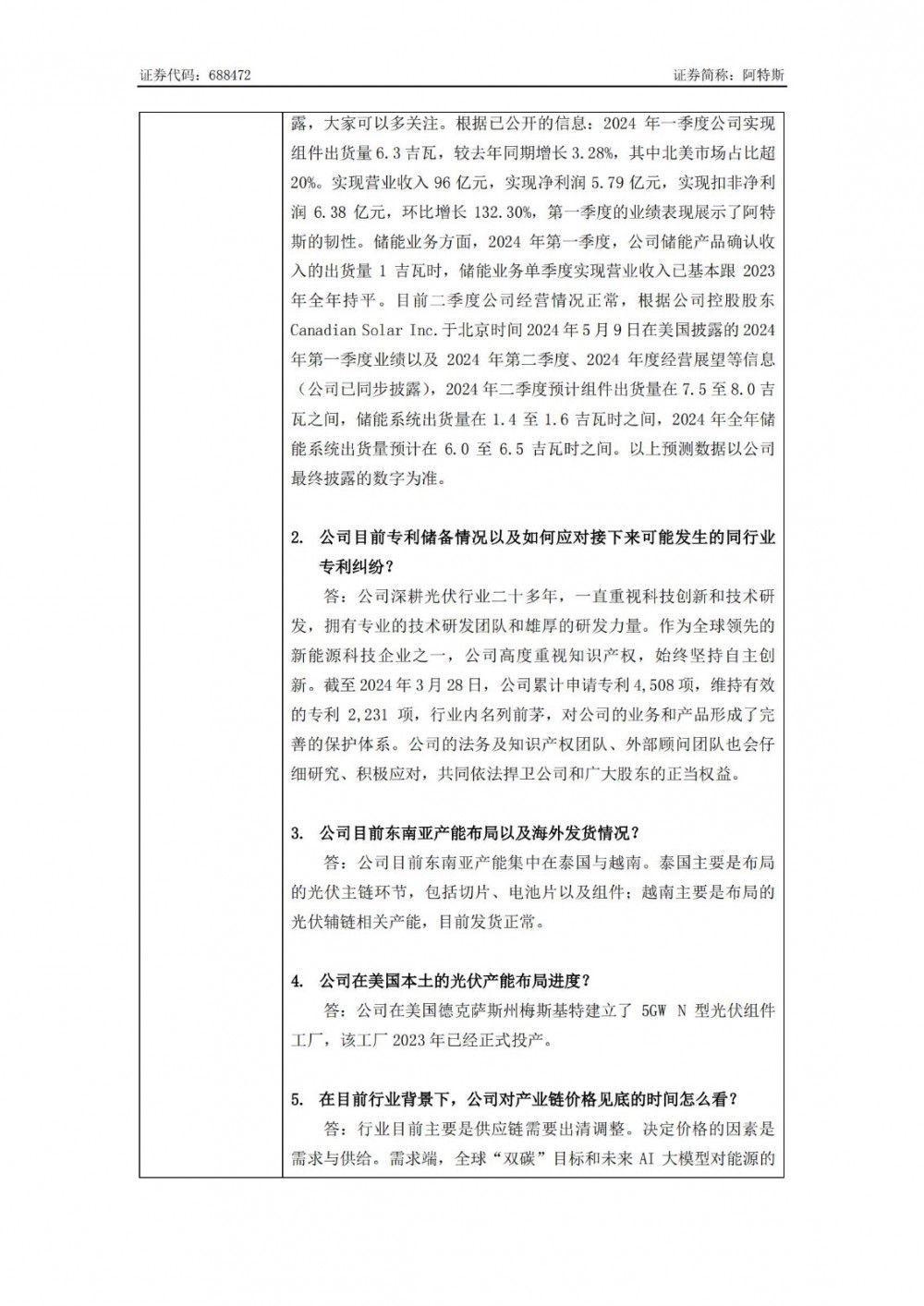据电力家了解到,7月3日,阿特斯发布投资者关系活动记录表。