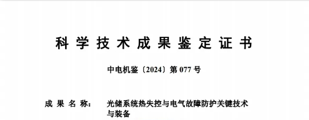 今年4月,中国电机工程学会以视频会议的方式组织召开了采日能源参与的“光储系统热失控与电气故障防护关键技术与装备”项目科技成果鉴定会。