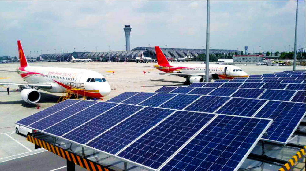 在成都双流国际机场,航微能源“光伏+储能+微电网”构成的光储网系统静静守护这片蓝天。