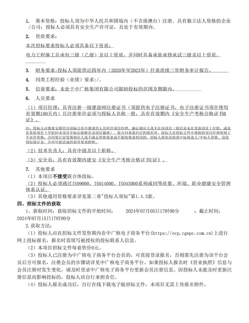 (3)本工程涉及到的设备的采购、安装、调试、特殊性试验、应满足当地电网并网要求,同时主要设备满足中广核新能源设备技术要求。