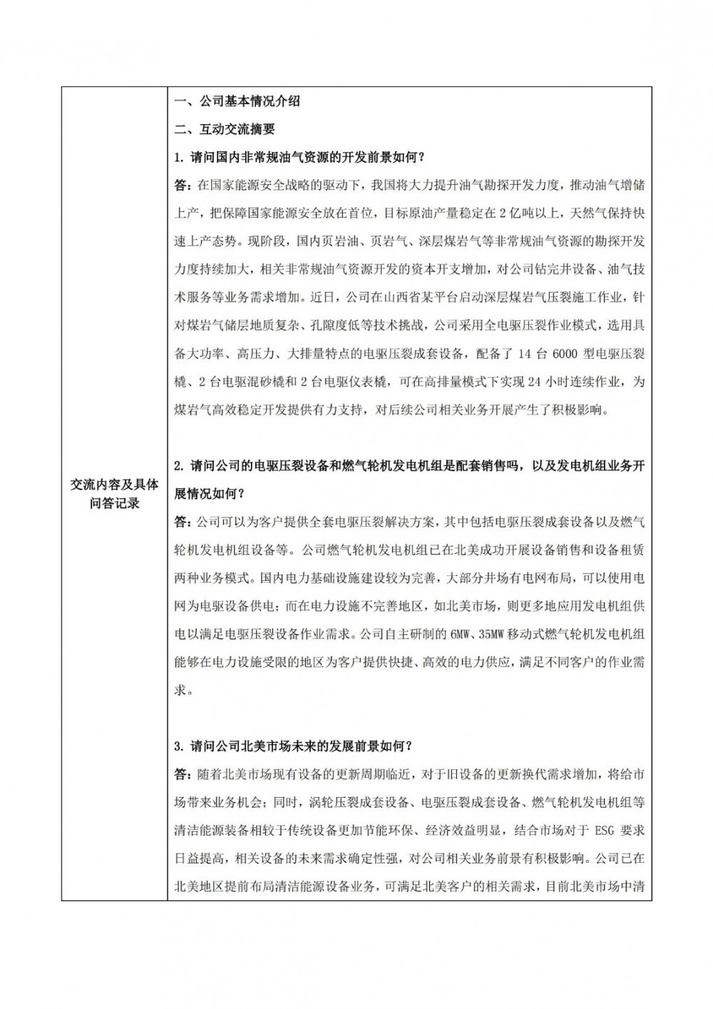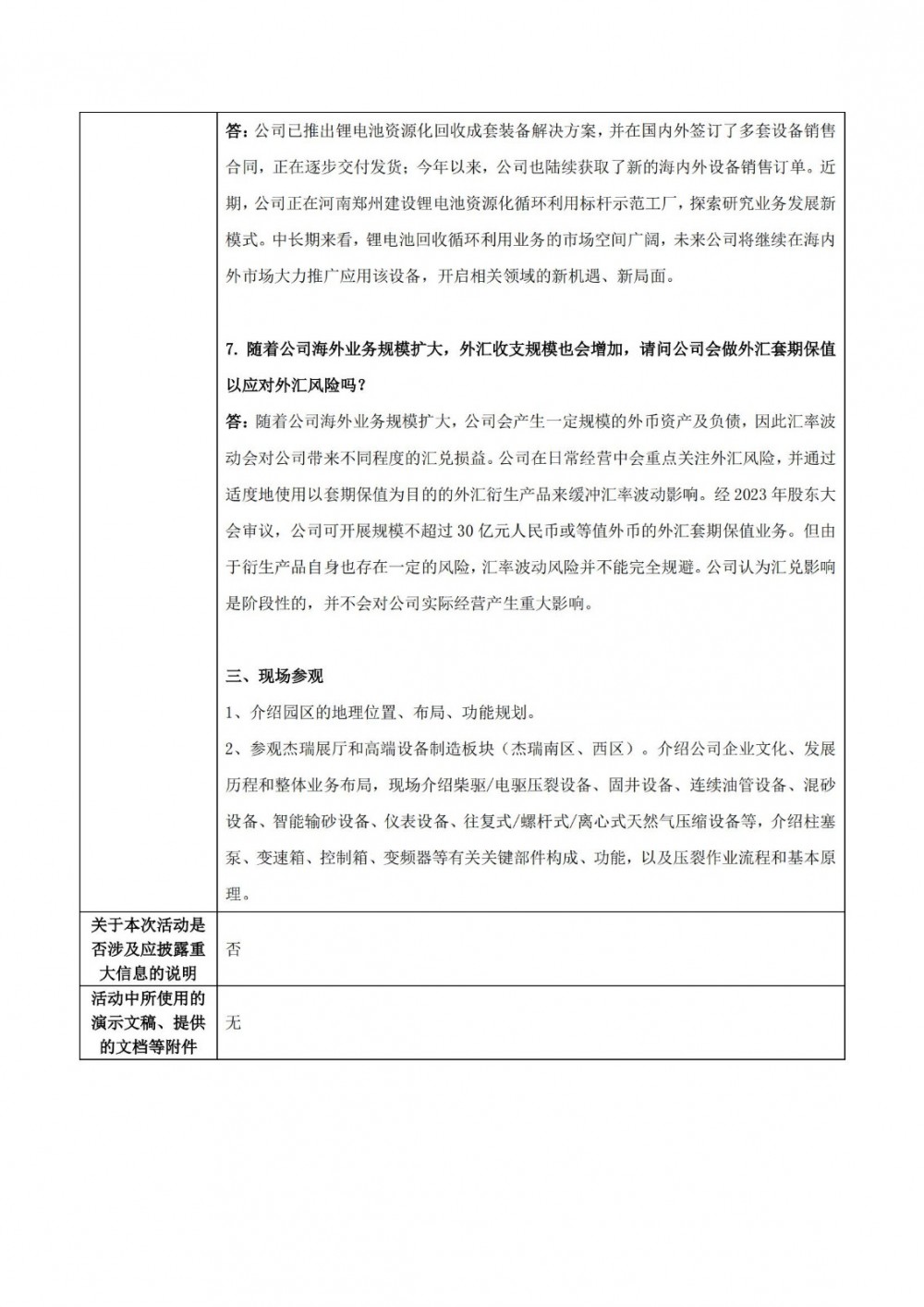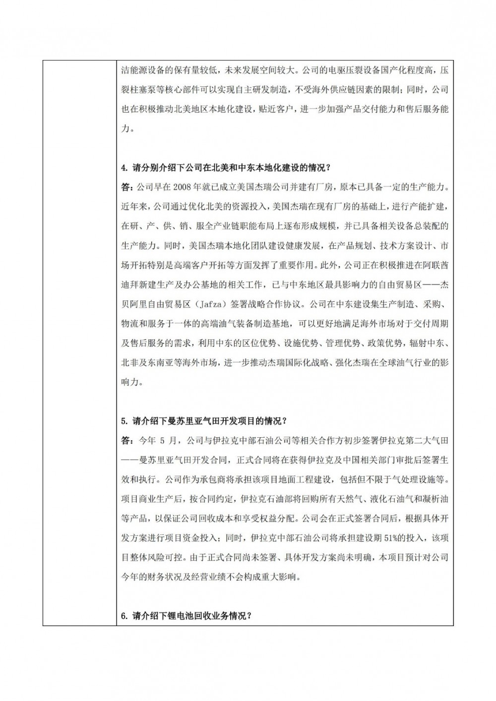 据电力家了解到,7月5日,杰瑞股份发布投资者关系活动记录表。