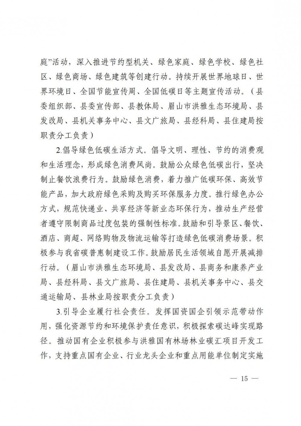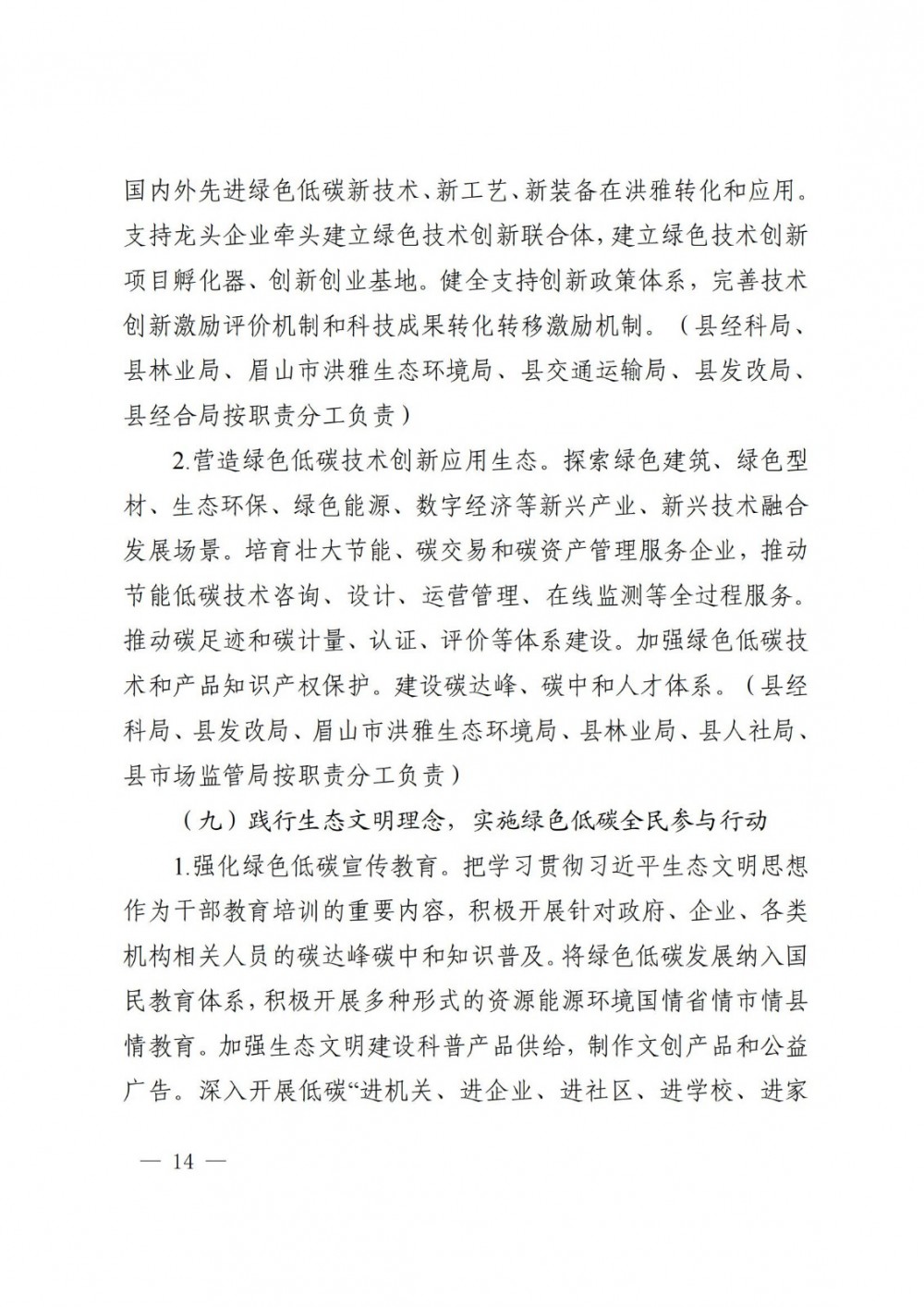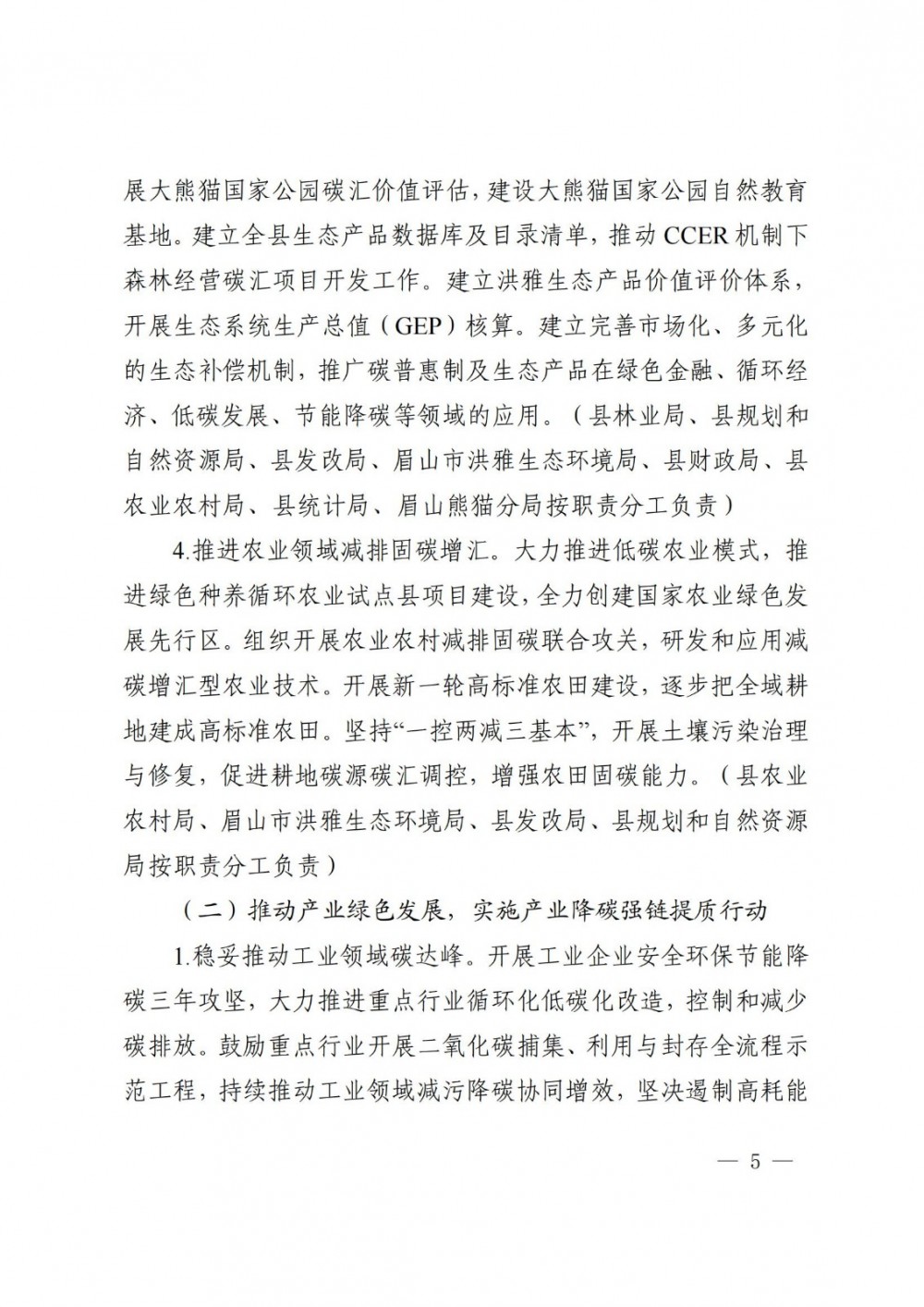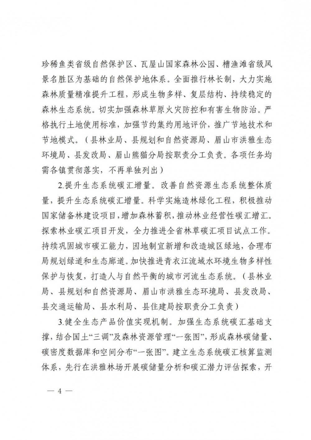 近日,洪雅县人民政府印发《洪雅县碳达峰实施方案》。