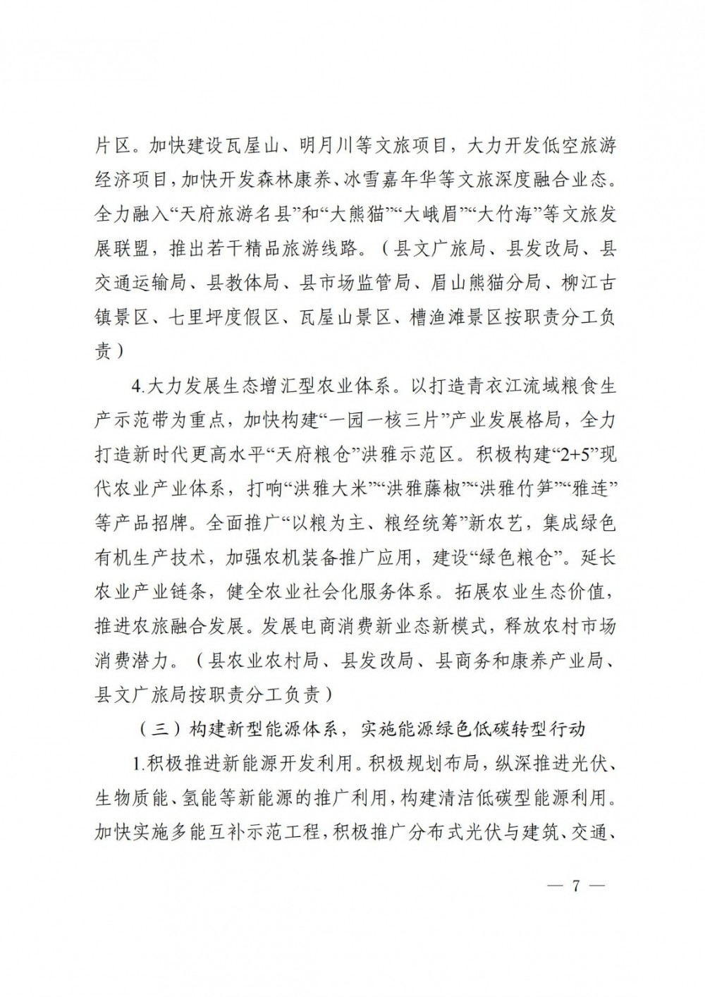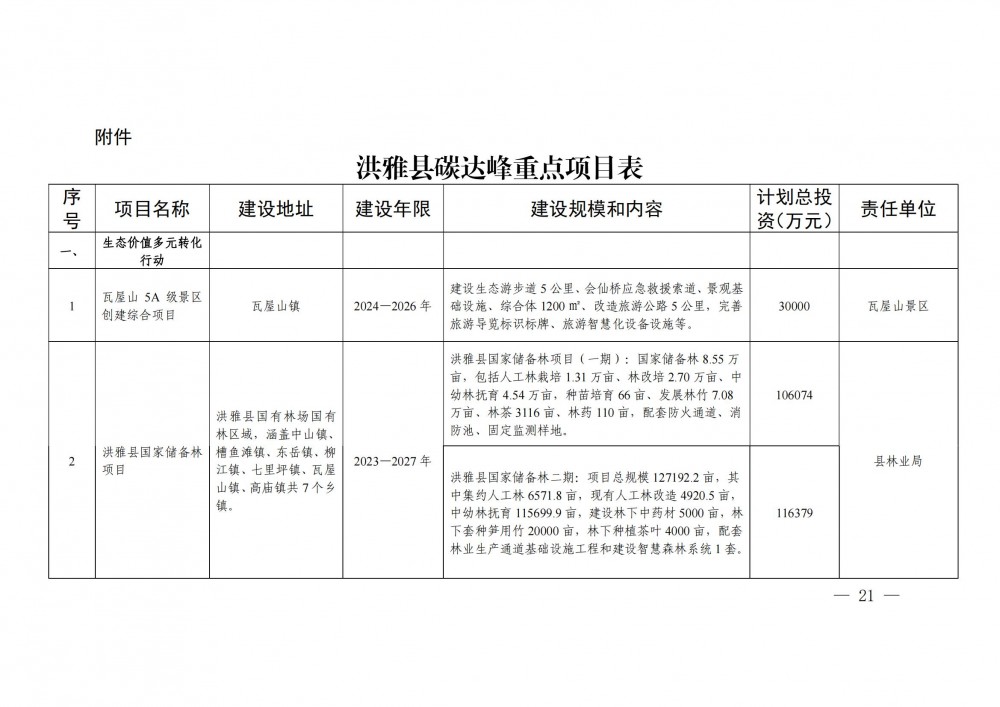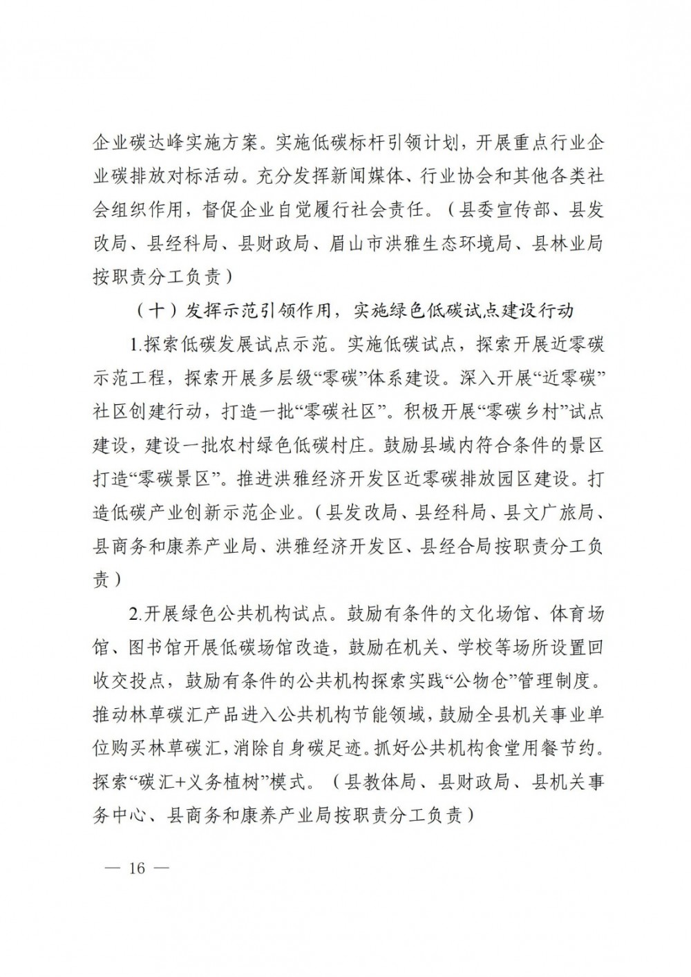 近日,洪雅县人民政府印发《洪雅县碳达峰实施方案》。