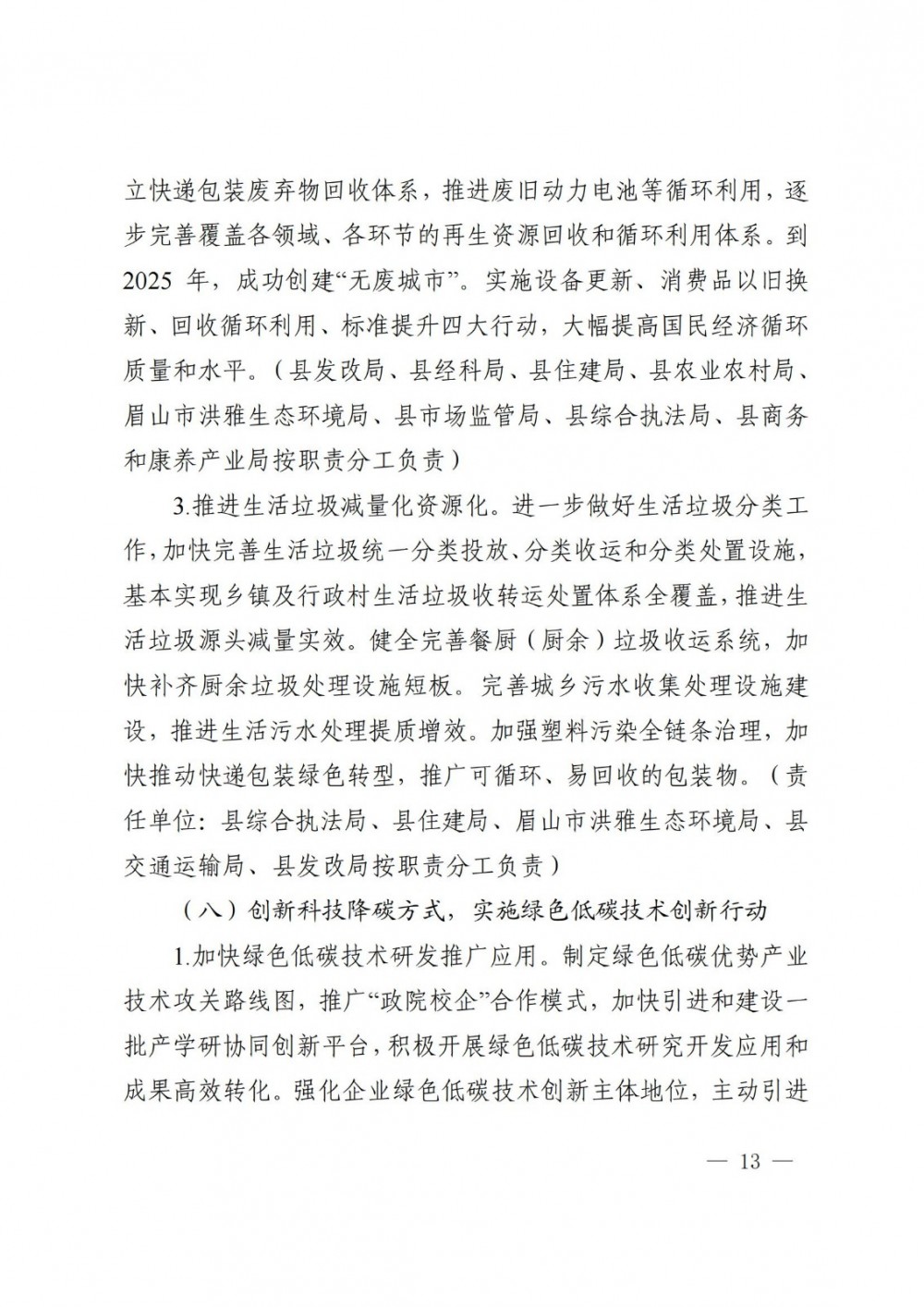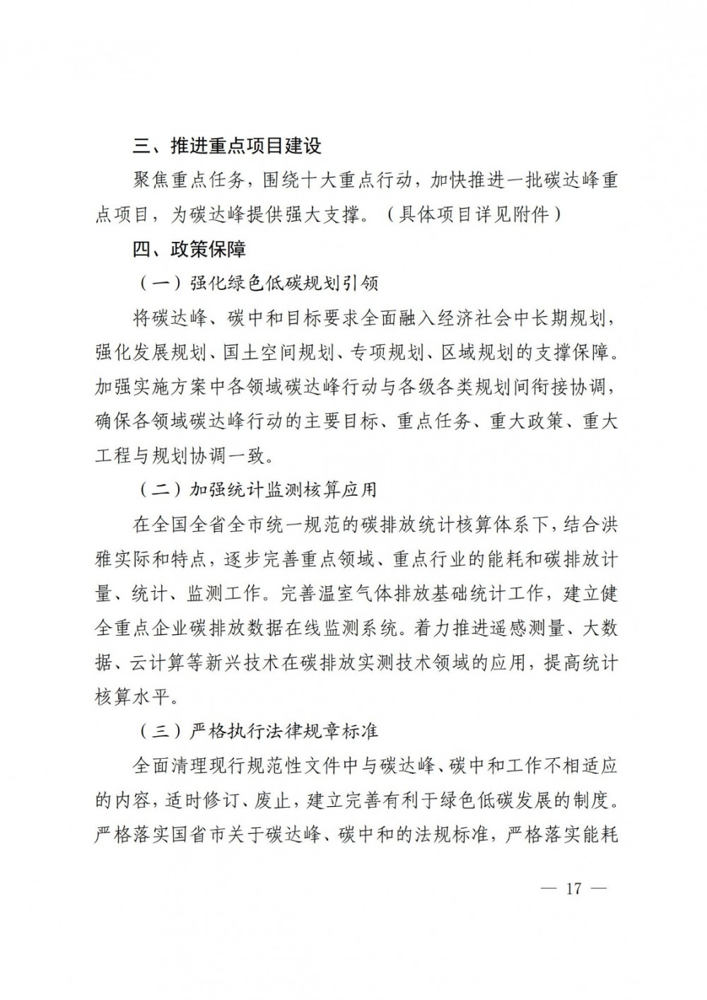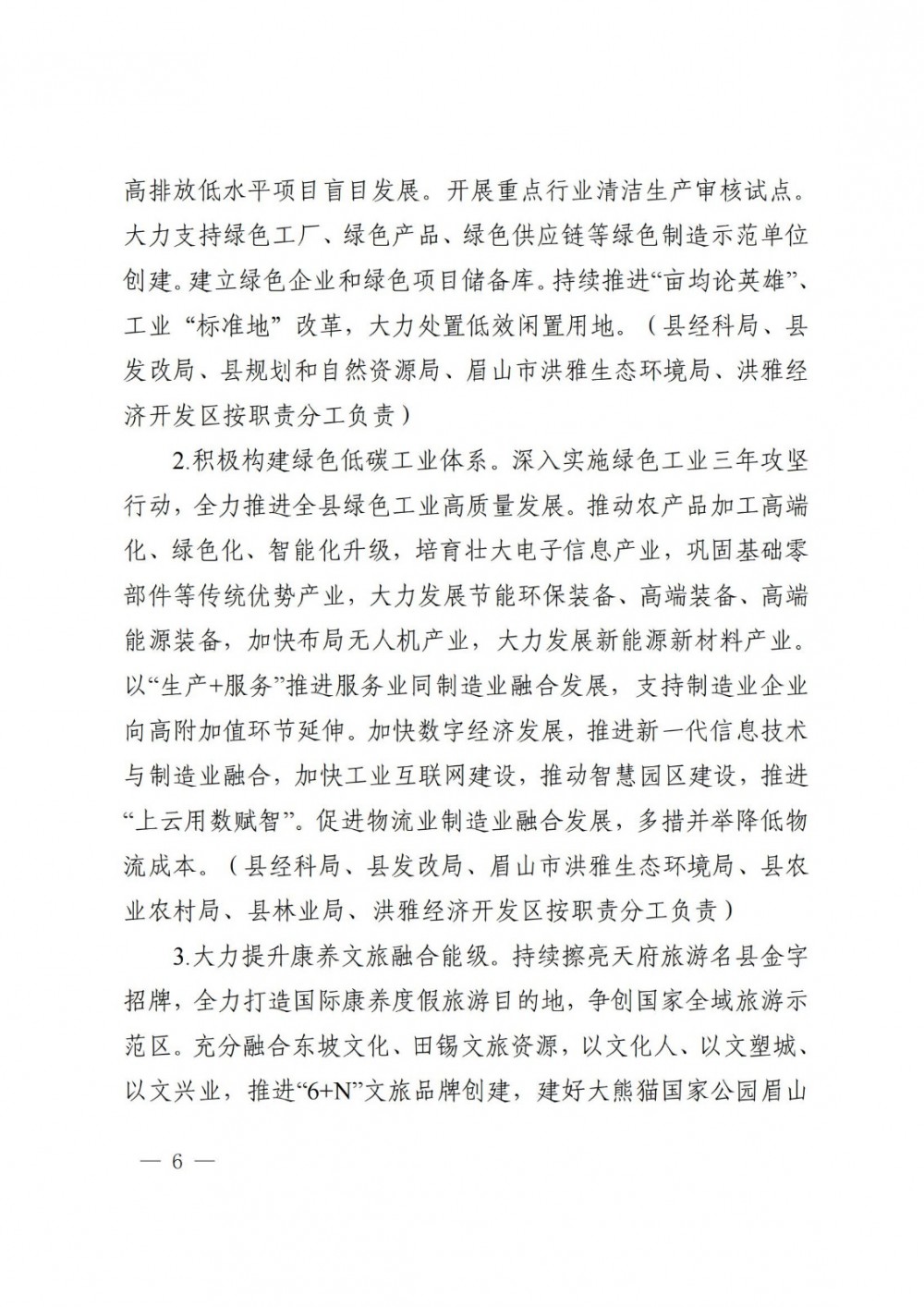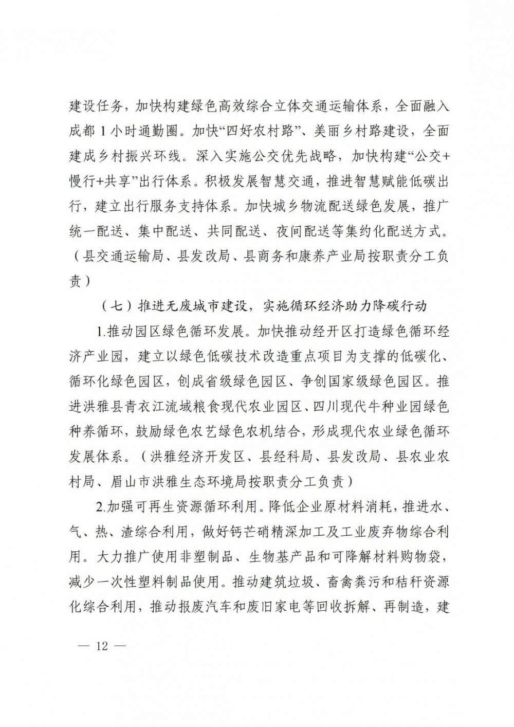 近日,洪雅县人民政府印发《洪雅县碳达峰实施方案》。