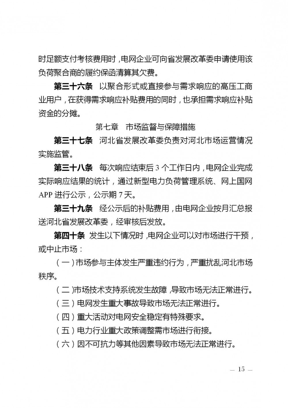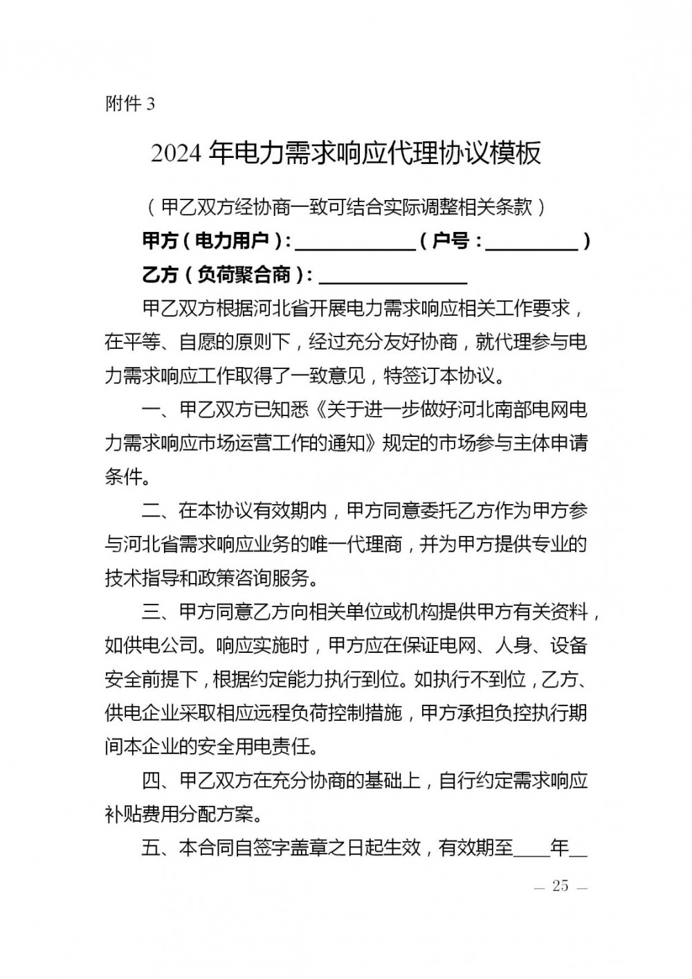 河北省发展和改革委员会关于印发河北省电力需求响应市场运营规则(2024年版)的通知