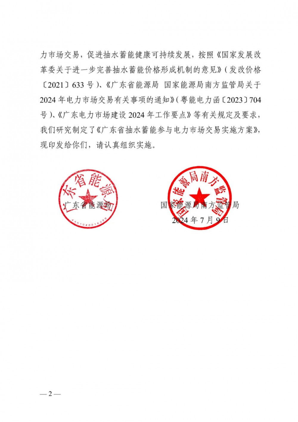 7月10日,广东省能源局、国家能源局南方监管局联合印发《广东省抽水蓄能参与电力市场交易实施方案》。