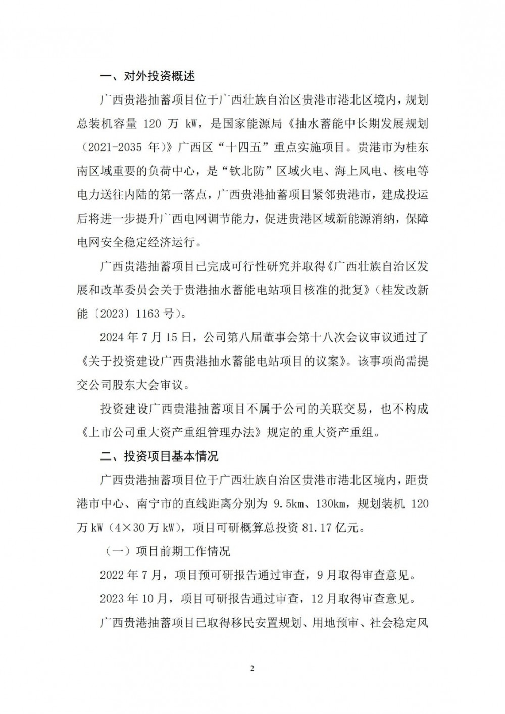 7月15日,南网储能发布关于投资建设广西贵港抽水蓄能电站的公告。