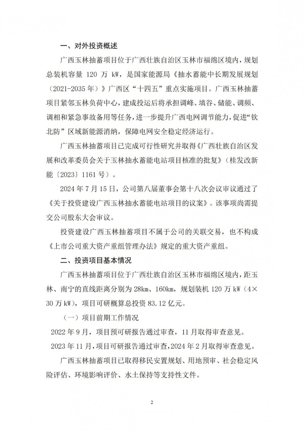 7月15日,南网储能发布关于投资建设广西玉林抽水蓄能电站的公告。