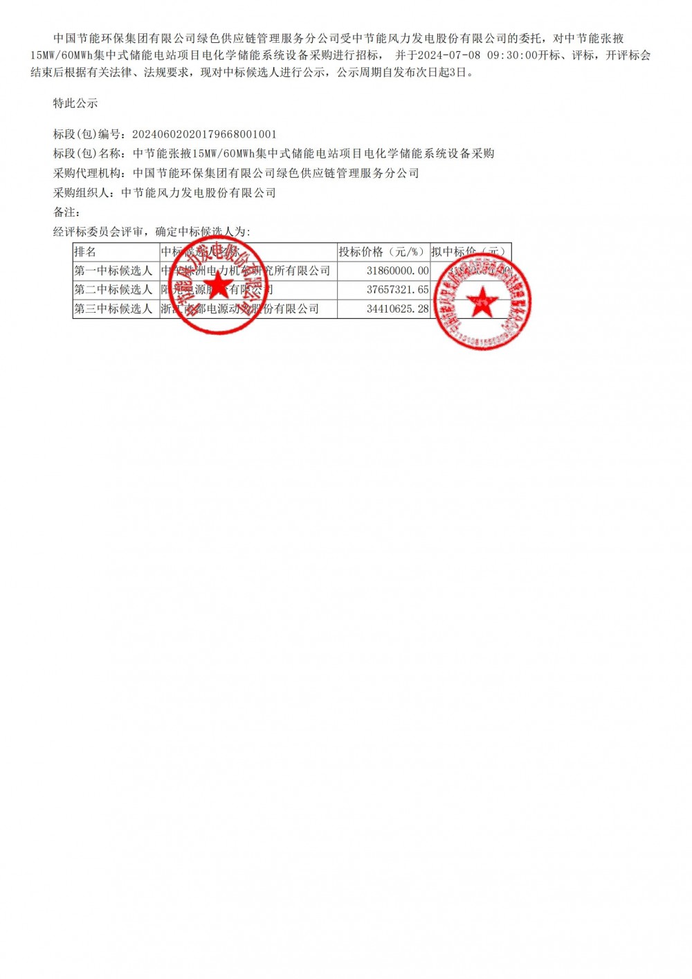 近日,中节能张掖15MW/60MWh集中式储能电站项目电化学储能系统设备采购中标候选人公示。