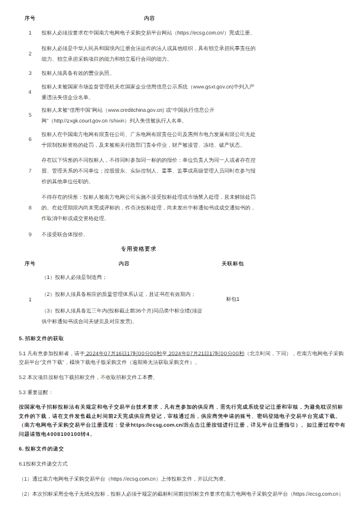 发布时间:2024-07-17 人气: 来源:南方电网电子采购交易平台