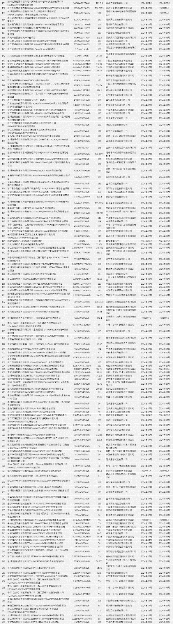 本月度浙江备案储能规模百兆瓦以上的有,长合区储能及光伏发电建设项目,规模为77MW/154MWh;海盐于城75MW/150MWH网侧储能电站项目,规模75MW/150MWH。