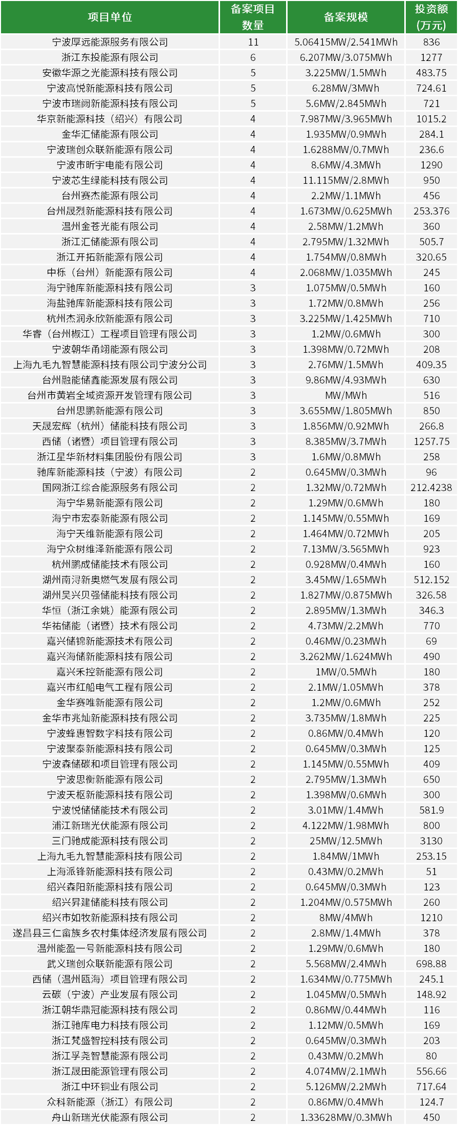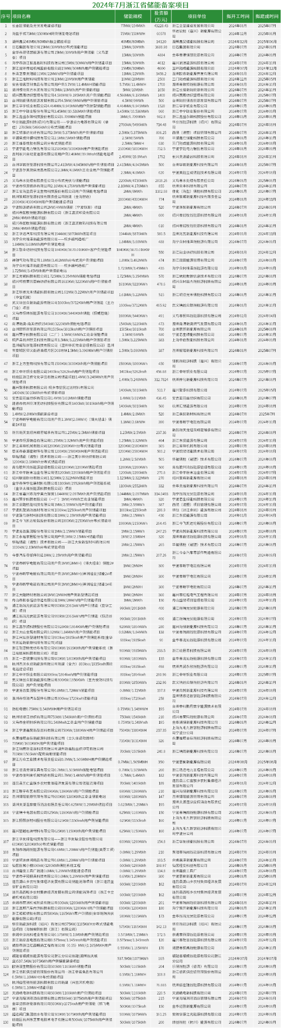 445个!浙江省7月储能项目备案清单出炉!