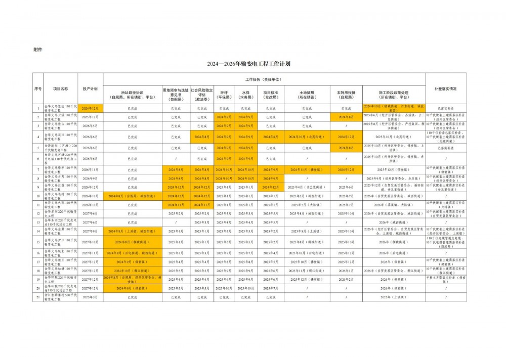 6.高效推进电网项目建设。市府办负责统筹协调推进本计划项目建设过程中的重难点问题。生态环境分局负责牵头落实本计划工程清单内工程的环评批复和环保验收工作。水务局负责牵头落实本计划工程清单内工程水土保持方案的批复和验收工作。各镇街、平台负责落实本计划项目的站址路径选择,积极提供合理站址和路径,配合自规局完成项目用地征收,项目实施过程中落实需由镇街、平台补差的资金。供电公司负责开展项目全过程管理,主动对接各部门开展各项工作,及时上报需协调解决的难点问题。