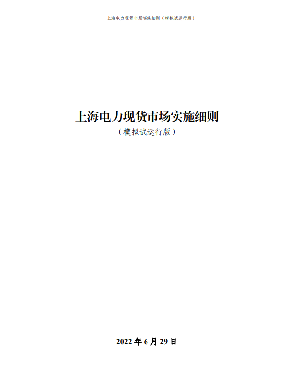 1.《上海电力现货市场实施细则(模拟试运行版)》