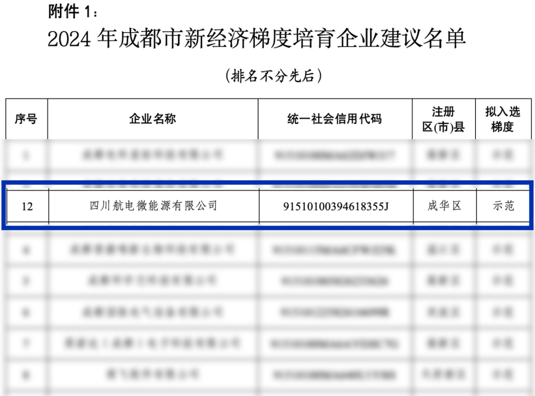 8月6日,四川省成都市经济和信息化局正式发布《2024年成都市新经济梯度培育企业建议名单》,航微能源凭借卓越的研发实力和市场表现,入选2024成都市“新经济示范企业”。