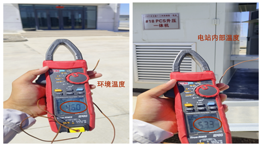 据可靠数据测试,在环境温度为43℃的100MW/200MWh大型电站区,使用常规散热设计方案,生活区环境温度为46℃,而电站内部环境温度高达53.3℃。