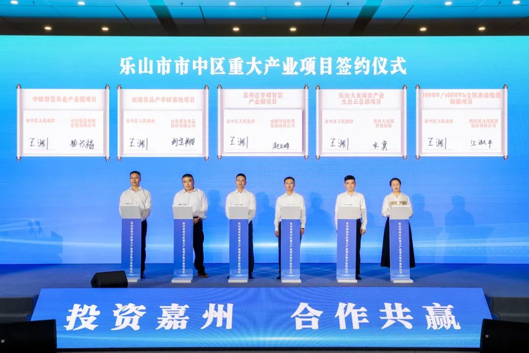2024年8月8日,四川伟力得能源股份有限公司(以下简称伟力得)与乐山市市中区人民政府在乐山市市中区重大产业投资签约仪式上,正式签署了合作协议,标志着100MW/400MWh全钒液流电池储能电站项目正式落户于乐山市市中区。
