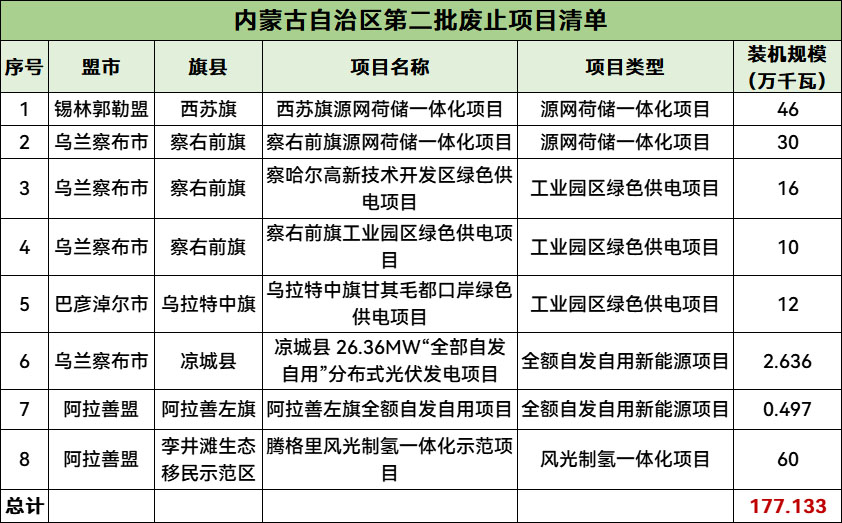 据悉,8月8日,内蒙古自治区能源局发布关于全区第三批废止新能源项目情况的公告,第三批共废止新能源项目16个,总规模557.23万千瓦。结合此前废止的第一批和第二批项目,内蒙古三批次累计废止新能源项目37个,总规模合计1265.293万千瓦。