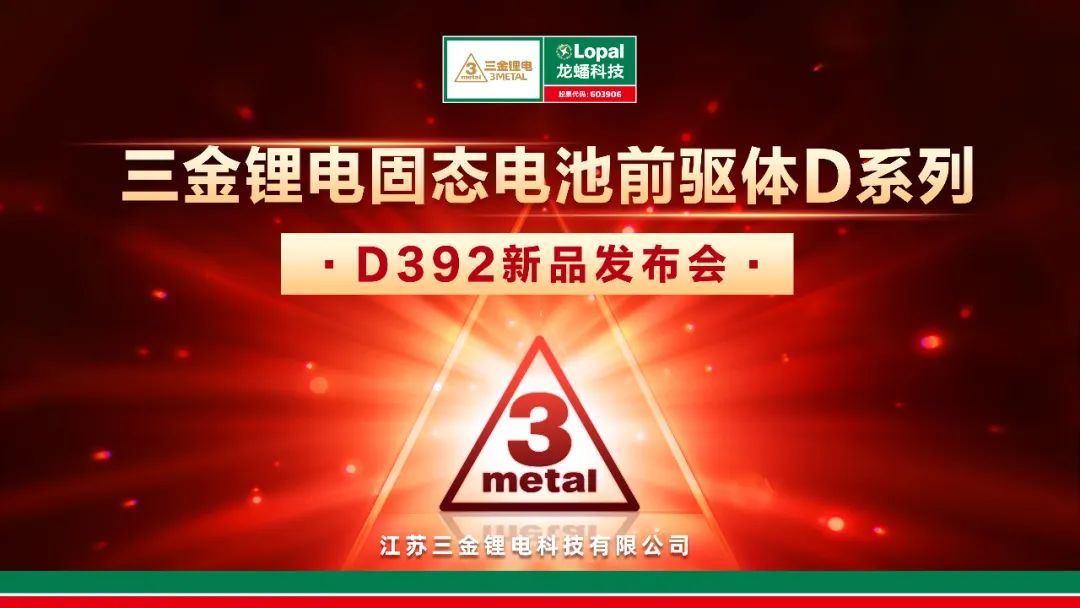 为了达成《中国制造2025》指出的2030年电池能量密度达到500Wh/kg的技术目标,固态电池应运而生。随着固态电池的快速发展,对于固态电池用正极材料和前驱体材料的需求也在迅猛发展。三金锂电紧跟潮流,潜心研究,在前驱体材料领域取得了重要突破,8月8日成功举办了固态电池前驱体D系列—D392的新品发布会。