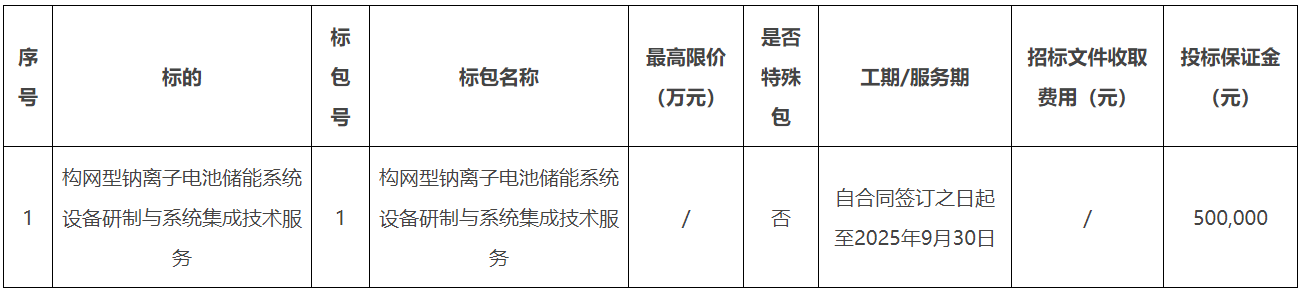 本招标项目南网储能公司储能科研院构网型钠离子电池储能系统设备研制与系统集成技术服务,招标人为南方电网储能股份有限公司,项目资金来自自筹资金,该项目已具备招标条件,现对本项目进行公开招标。