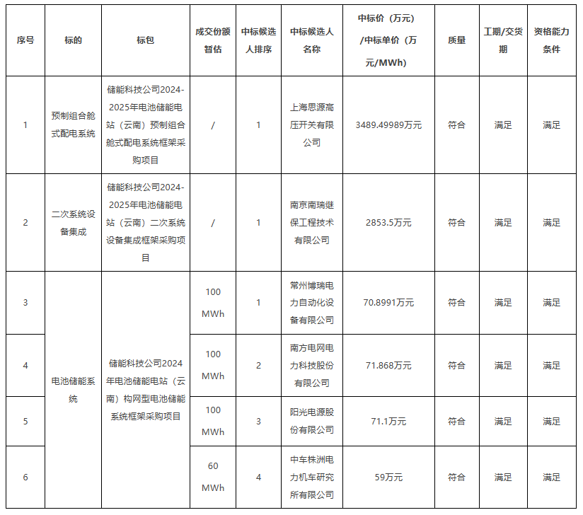 据悉,8月12日,南网储能科技公司电池储能电站预制组合舱式配电系统、二次系统设备、构网型电池储能系统框架采购招标项目发布中标候选人公示。