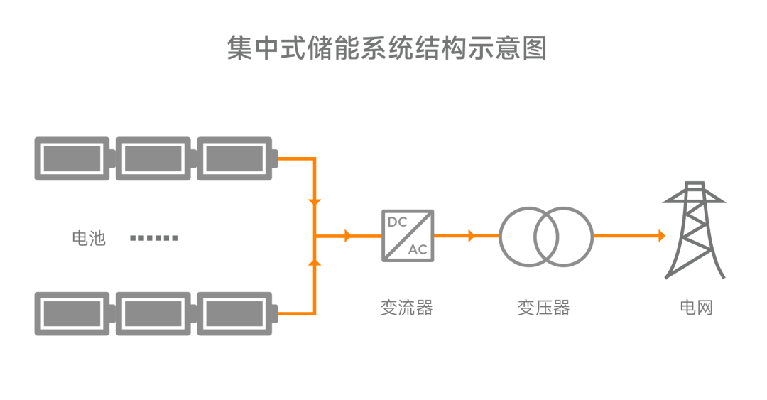 集中式储能通常采用集装箱式的装配方式,单台设备容量大、体积大。其系统结构为:Pack电池串联组成电池簇,多个电池簇在直流侧并联,汇入一个储能变流器转换成交流电,再经由变压器升压后接入电网。集中式储能系统架构较为简单,便于进行高效的调度与控制。然而,其多组电池并联的设计在带来便利的同时,也埋下了电池簇间均衡性挑战的隐患,大量电池的并联可能会导致电池簇之间的均衡性问题,这可能影响系统的整体性能,并可能对电站的长期稳定运行产生潜在风险。