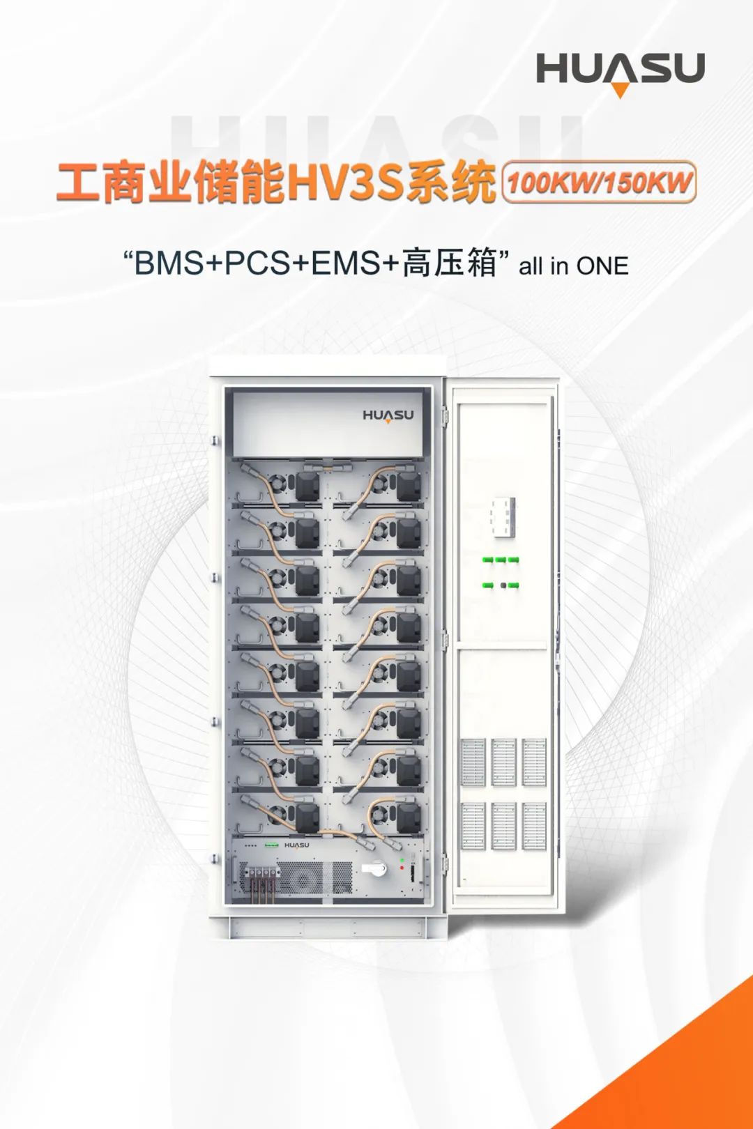 HV3S系统对工商业储能的核心部件进行了突破性创新,将BMS(电池管理系统)、PCS(储能变流器)、EMS(能量管理系统)与高压箱进行了深度融合并集成在一个模块内,采用华塑自研技术,实现能量管理的高效率、高安全性、高可靠性以及更优的可维护性,解决不同品牌部件间的兼容性差、系统集成周期长、维护复杂等行业痛点。