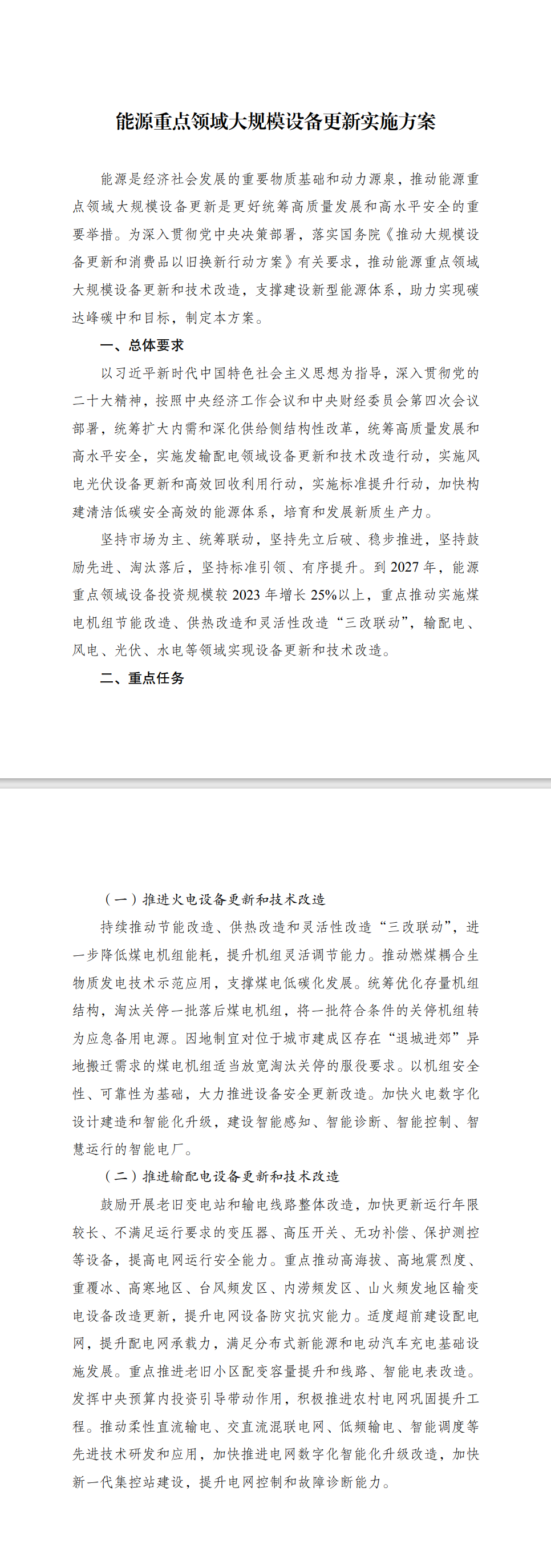 国家发展改革委办公厅 国家能源局综合司关于印发《能源重点领域大规模设备更新实施方案》的通知