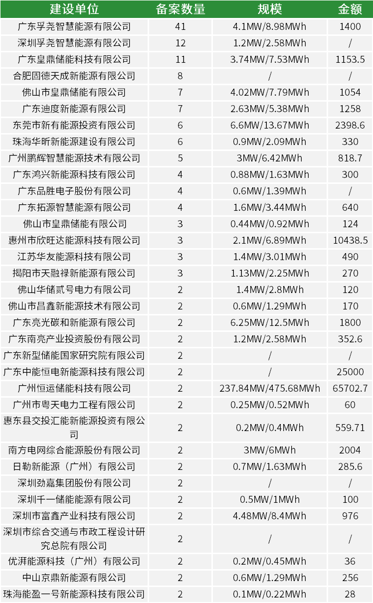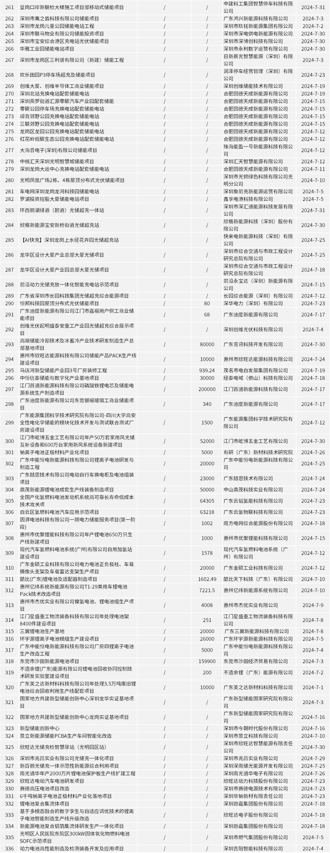 本月投资金额最大的项目是拟投20亿元建设的江门首通新能源科技有限公司磷酸铁锂电芯及储能电源系统生产制造项目;紧接着是投资17.85亿元的阳江市阳西县程村镇500MW/1000MWh独立储能电站项目、投资15.99亿元的东莞市沙田新能源电池项目以及投资10.36亿元的广东省面向多应用场景提升电网韧性的综合储能示范项目。