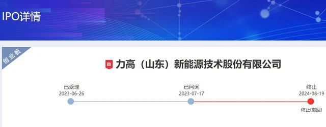 8月19日,由于保荐人撤回发行上市申请,深交所决定终止力高(山东)新能源技术股份有限公司(以下简称力高新能)的创业板IPO审核。