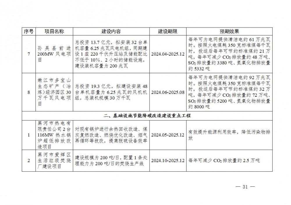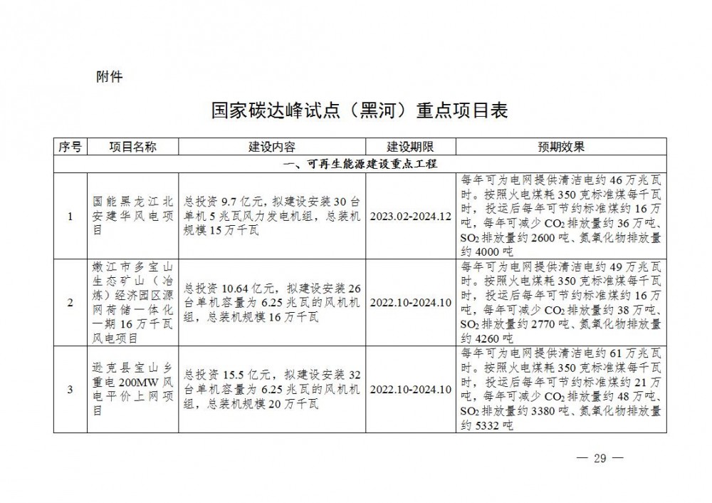 附件:国家碳达峰试点(黑河)重点项目表