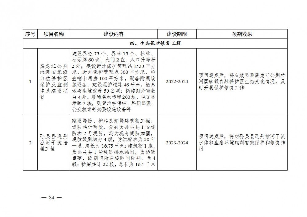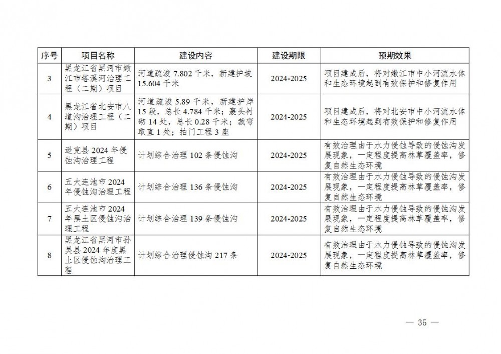 7.筑牢生态安全屏障。生态环境质量明显改善。统筹推进蓝天、碧水、净土、美丽乡村、原生态五大保卫战和13场标志性战役,污染防治攻坚战136项具体任务全部完成。生态保护与修复扎实推进。开展“绿盾”自然保护区监督检查专项行动,加大自然保护区内环境问题整改力度。划定并严守生态保护红线。创新生态修复治理模式。黑河市历史遗留矿山面积8340.87公顷。2022—2023年,通过自然恢复、转型利用和工程恢复,共完成历史遗留矿山生态修复面积2459.70公顷。