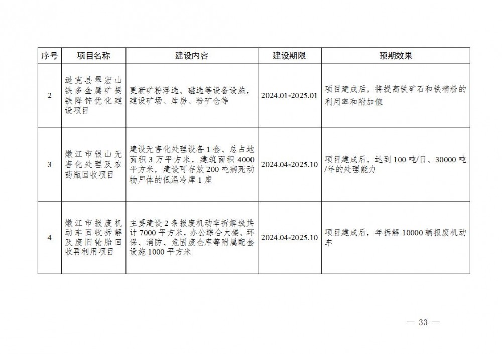 5.资源循环增绿提效。农林废弃物循环利用。推广深翻还田、捡拾打捆、秸秆离田多元利用等技术,积极培育秸秆收储运和综合利用,推进秸秆全量利用,建立畜禽粪污资源化利用可持续运行机制,加大规模养殖场粪污处理设施装备配套建设,全面提高畜禽养殖粪污综合利用水平,加大农膜回收利用。“两网融合”体系日趋规范。通过引入社会资本,建成黑河市全诚可回收物分拣中心,配合原有生活垃圾处理厂和医疗废物处理厂,完善终端处置体系,提升各类垃圾终端处置能力,实现垃圾分类处理、资源利用、废物处置的无缝高效衔接。