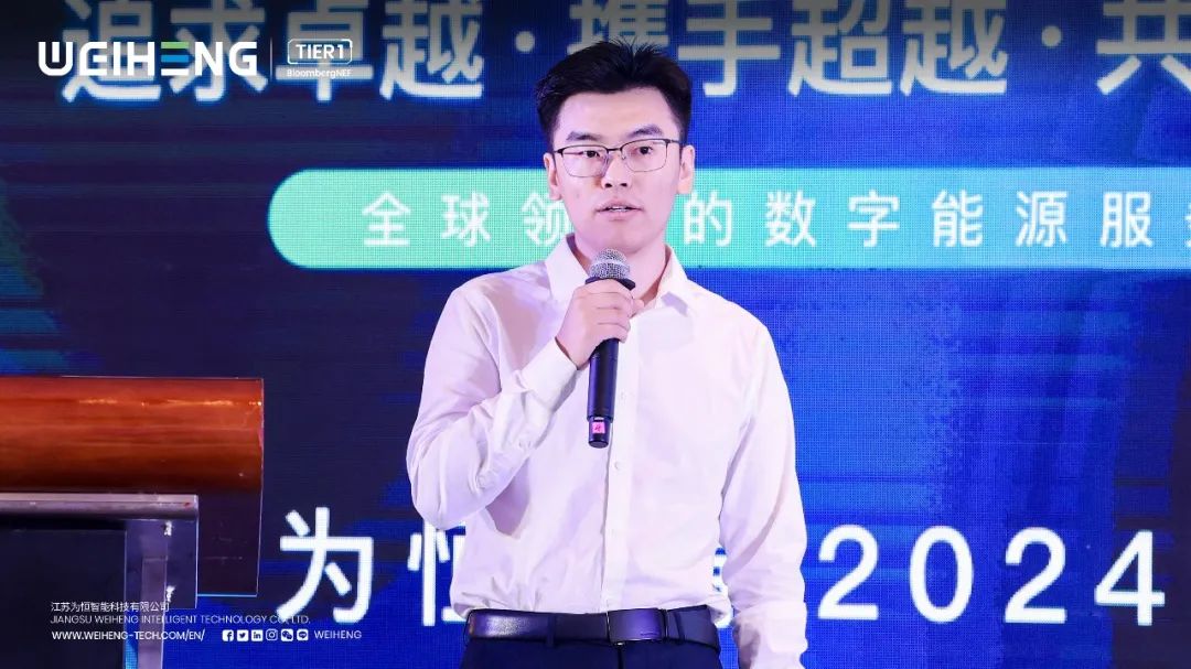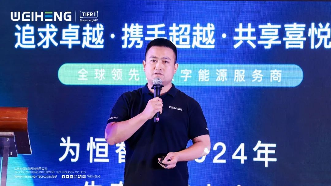 为恒智能副总裁、杨树博士向与会代表介绍了公司整体情况:为恒智能作为一家以全场景储能软硬件设备的研发、生产、销售和服务为核心,并提供VPP、碳交易等SAAS服务的全球能源服务商;先后荣获“彭博财经Tier 1 全球一级储能厂商”、“邓白氏4AA1高分评级”等诸多荣誉。公司秉持“国内+海外双引擎”的业务布局理念,已在欧洲、澳洲、中国、东南亚、中东等国家和地区交付数百兆瓦时储能项目,产品系列涵盖规模型储能、工商业储能、户用储能等场景,是全球业主的安心之选。