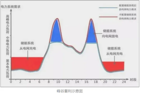 峰谷套利是最常见的商业模式。用户可以在用电低谷以较便宜的谷电价对储能进行充电;在负荷高峰时,由储能电池向负荷供电,实现峰值负荷的转移,从峰谷电价中获取收益。