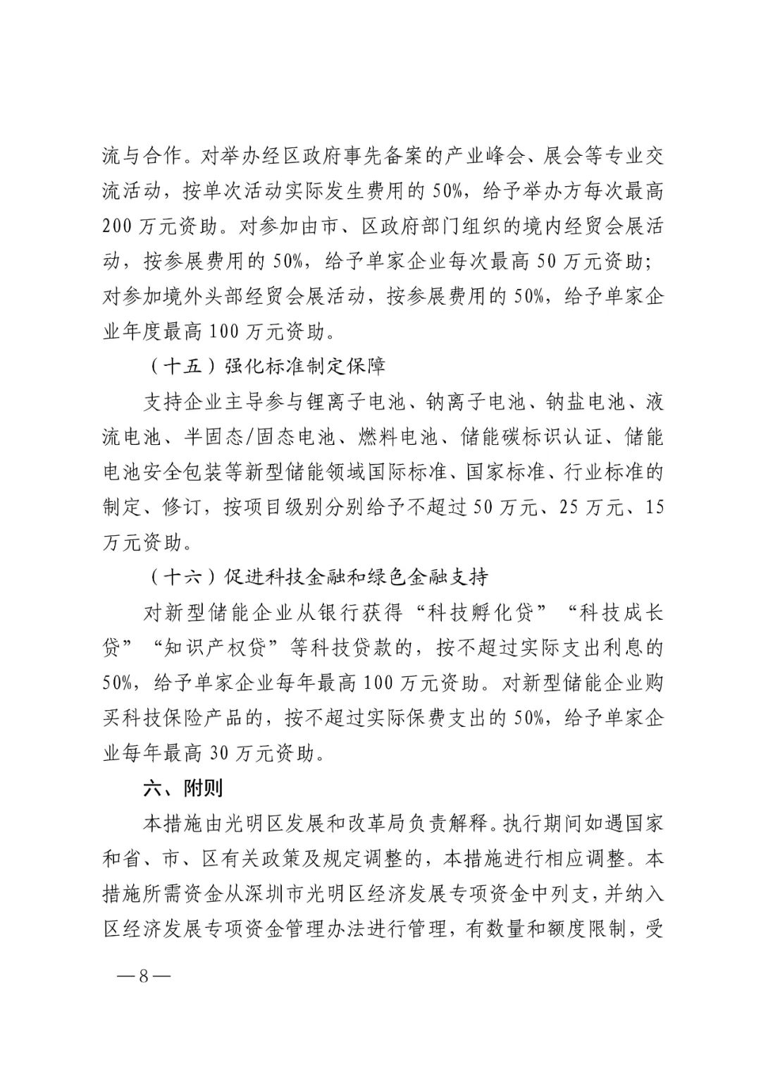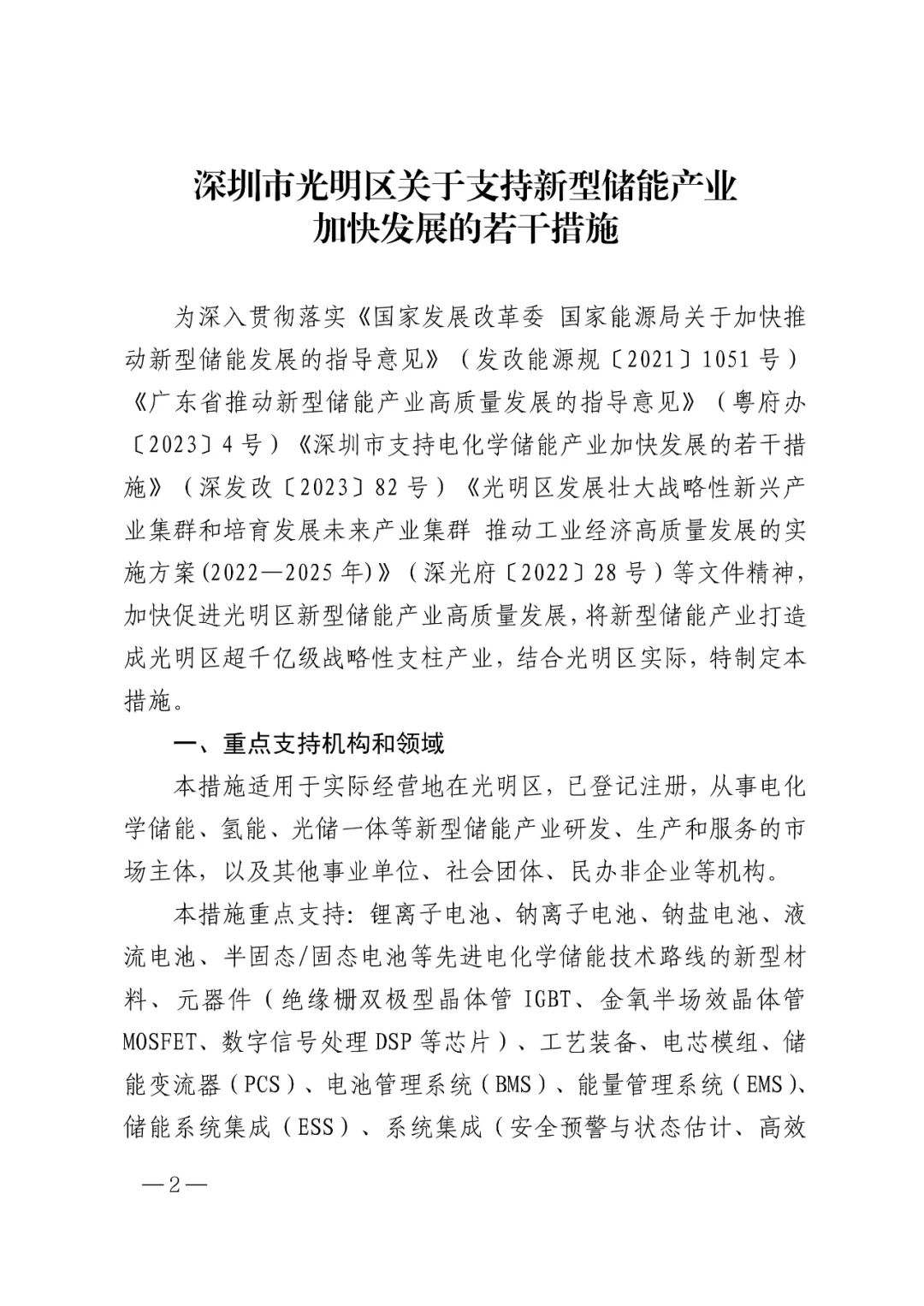 深圳市光明区人民政府印发《深圳市光明区关于支持新型储能产业加快发展的若干措施》的通知