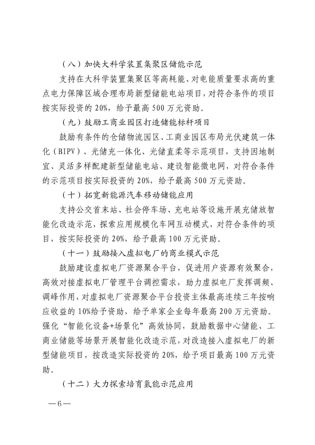 支持在大科学装置集聚区等高耗能、对电能质量要求高的重点电力保障区域合理布局新型储能电站项目,对符合条件的项目按实际投资的20%,给予最高500万元资助。