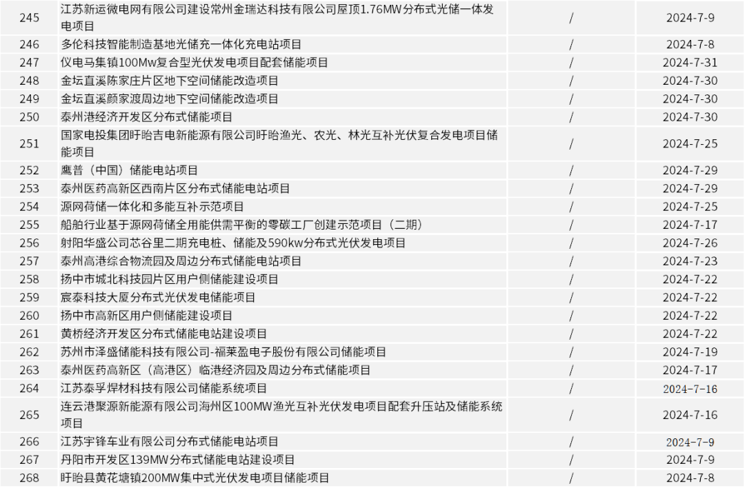 7月江苏省储能备案电站项目有268个,2026MW/4664MWh,包括共享储能、用户侧储能、光储、源网荷储等多种形式的储能项目,其中以用户侧储能为主。具体备案项目汇总如下: