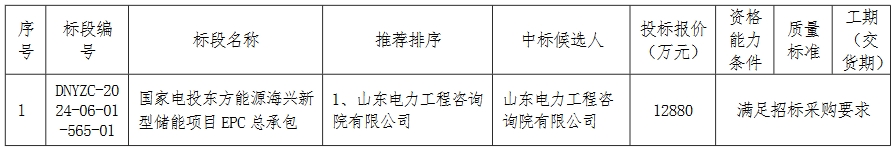 山东电力工程咨询院有限公司以12880万元中标该项目EPC标段,折合单价0.322元/Wh。