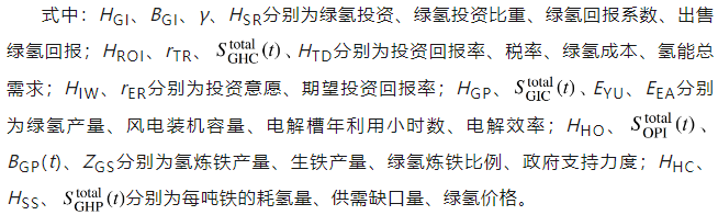 为进一步得到定量结论,在因果关系图的基础上,识别各因素的变量属性,细化因素间的数量关系,确定绿电-氢能-钢铁冶炼耦合系统的结构方程。