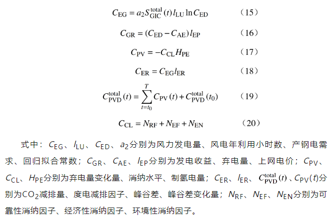 2)绿氢回报。绿氢的充足供应是保障绿氢产业发展的重要基础,对绿氢的不断投资会促进绿氢成本不断降低,由绿氢成本和价格所得的投资回报会加快风电装机容量的增长,主要方程式如下。