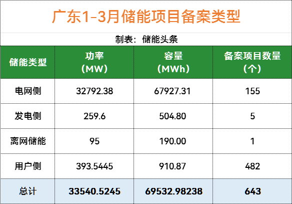 注:数据以广东省2025年1-3月份储能备案项目为基础。