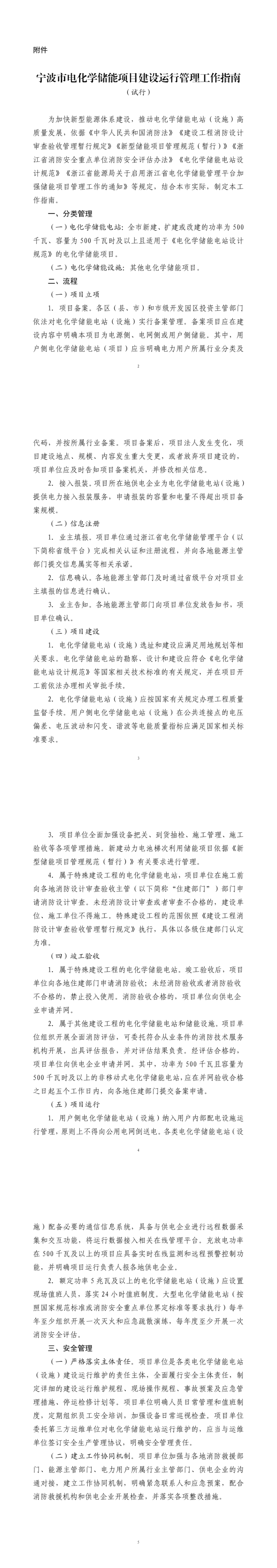 获悉,近日,浙江省宁波市能源局发布了《宁波市电化学储能项目建设运行管理工作指南(试行)》,该指南对宁波市电化学储能项目建设运行作出一系列要求。