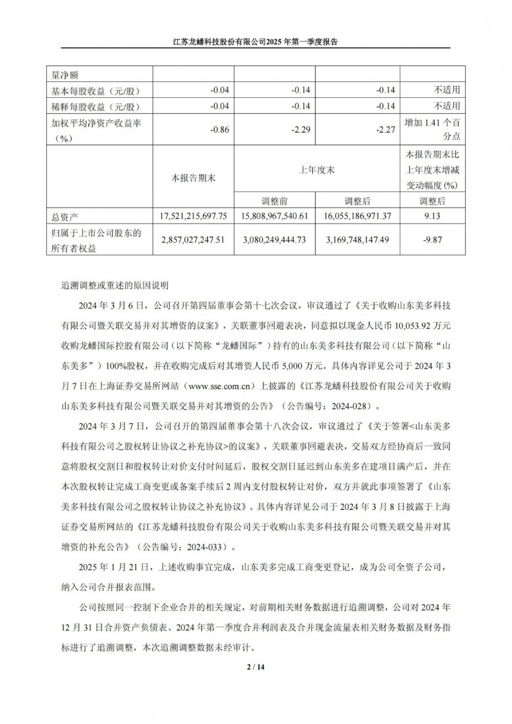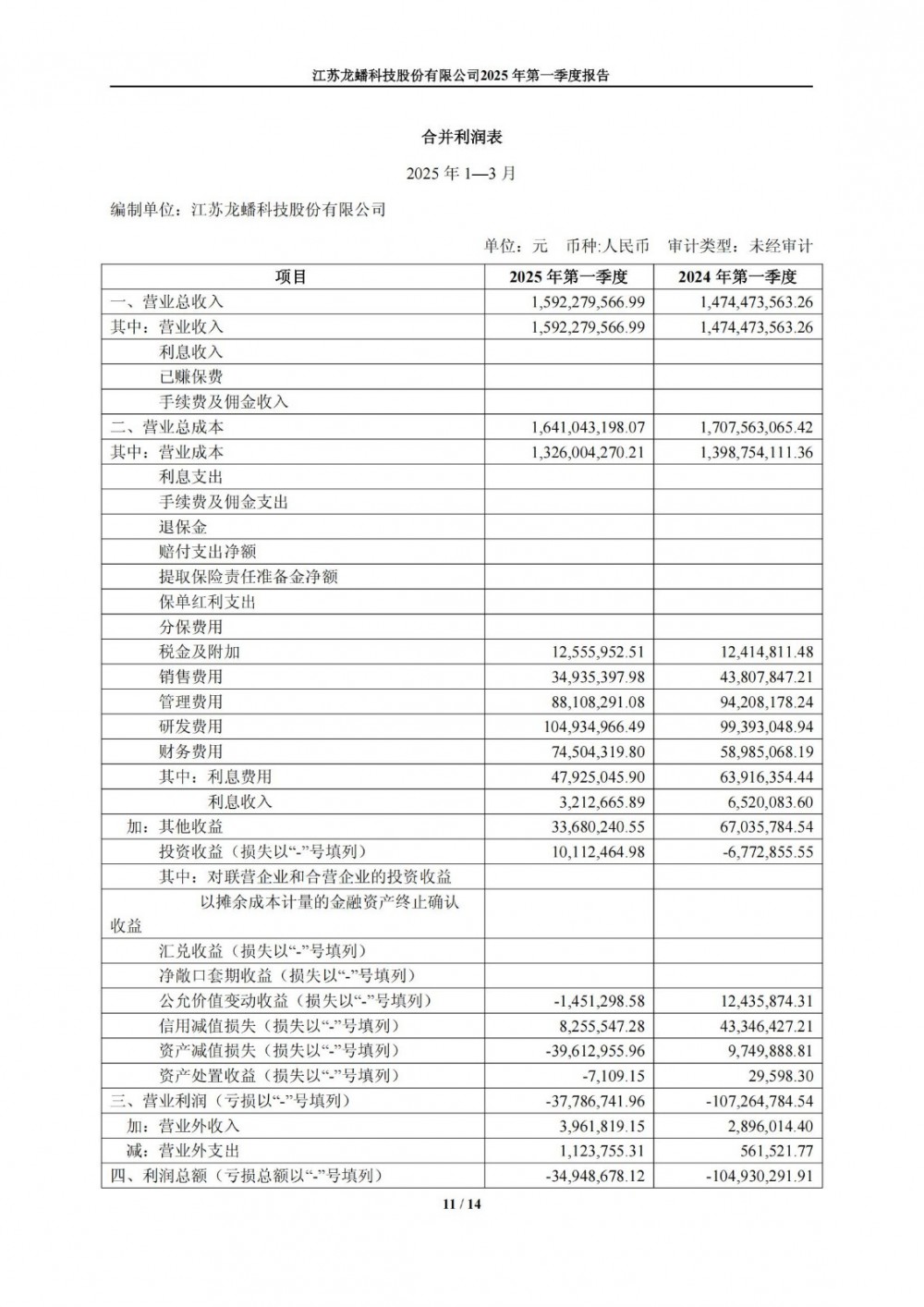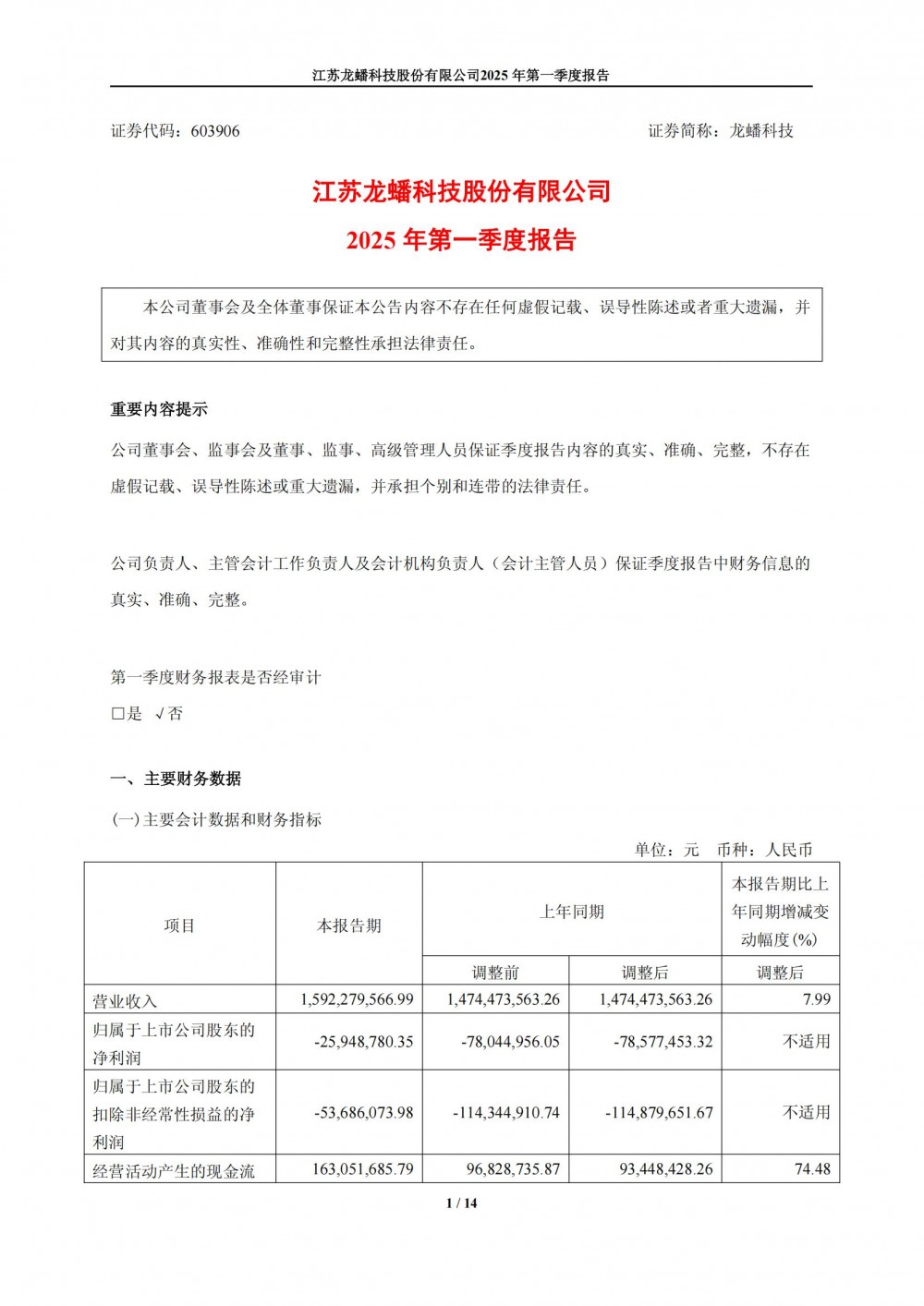 2025年一季度,龙蟠科技实现营业总收入15.92亿元,同比上涨7.99%;归母净利润亏损2594.9万元,上年同期亏损7857.7万元;扣非净利润亏损5368.6万元,上年同期亏损1.15亿元。