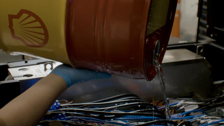 壳牌浸没式冷却液由壳牌实验室自主研发,通过将服务器浸入电绝缘液体中实现散热,其热传导效率是风冷系统的千倍以上[2]。并且,由于无需对风扇、冷却器和蒸发冷却系统等传统设备,还可使数据中心占地面积缩减80%。[2]