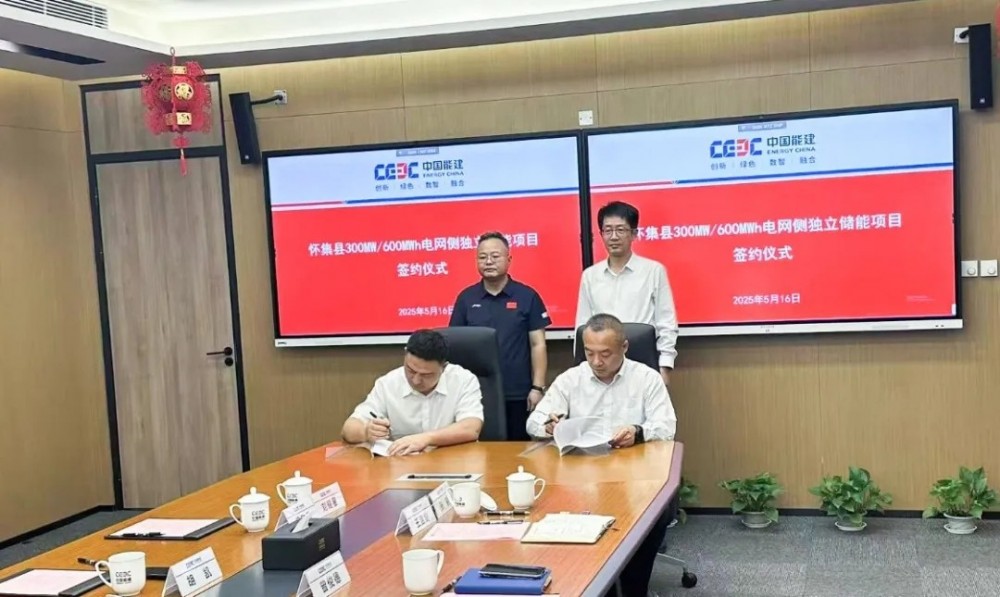 2025年5月16日,江苏同启新能源科技有限公司与广东省肇庆市怀集县人民政府在中能建(上海)成套工程有限公司举行签约仪式,正式签署肇庆怀集300MW/600MWh电网侧独立储能项目合作协议。怀集县人民政府县委副书记、县长陈腾达,县委副书记胡凯,中能建(上海)成套工程有限公司党总支副书记、总经理曾俊德,党总支委员、副总经理王温剑,同启新能源总经理刘晓露等出席仪式。